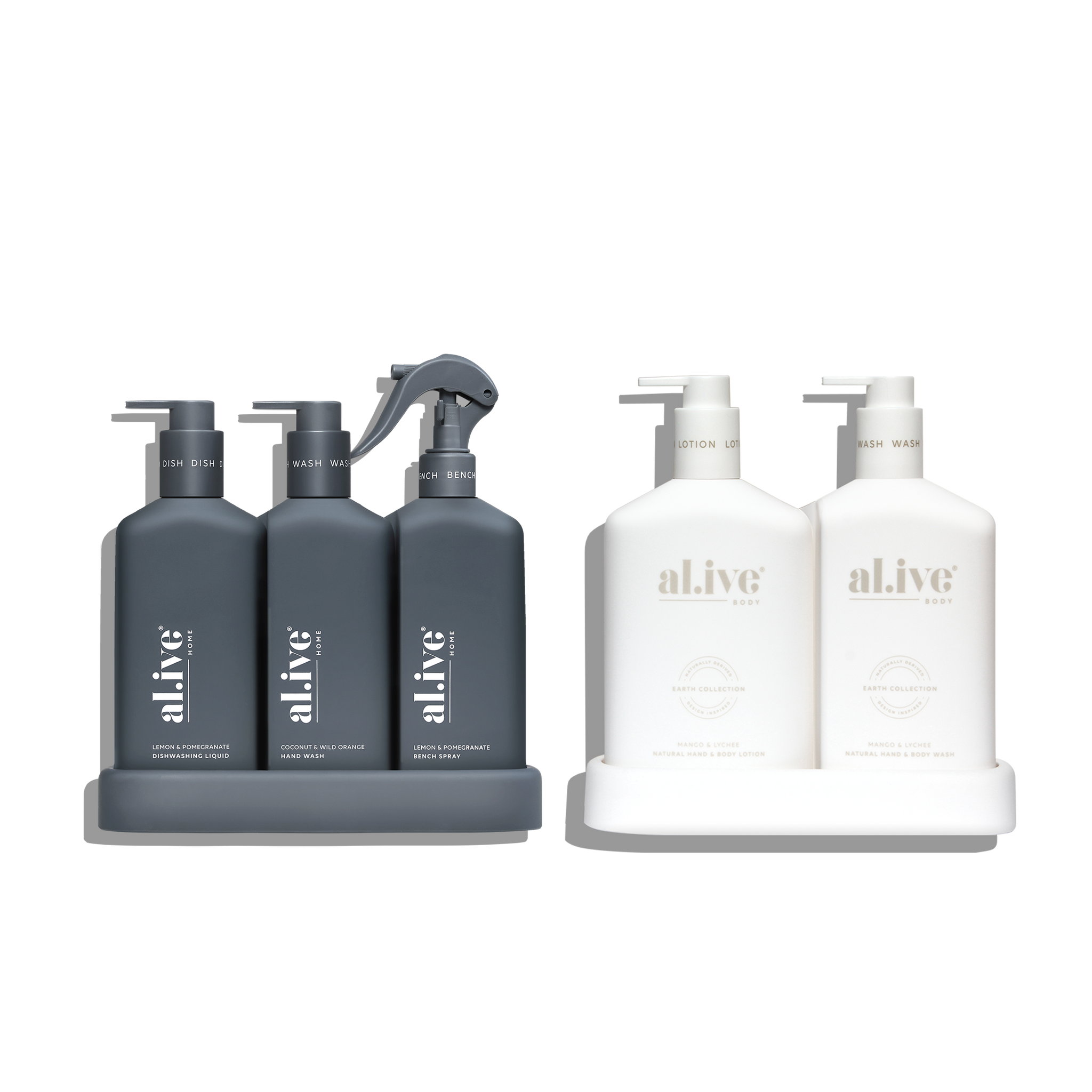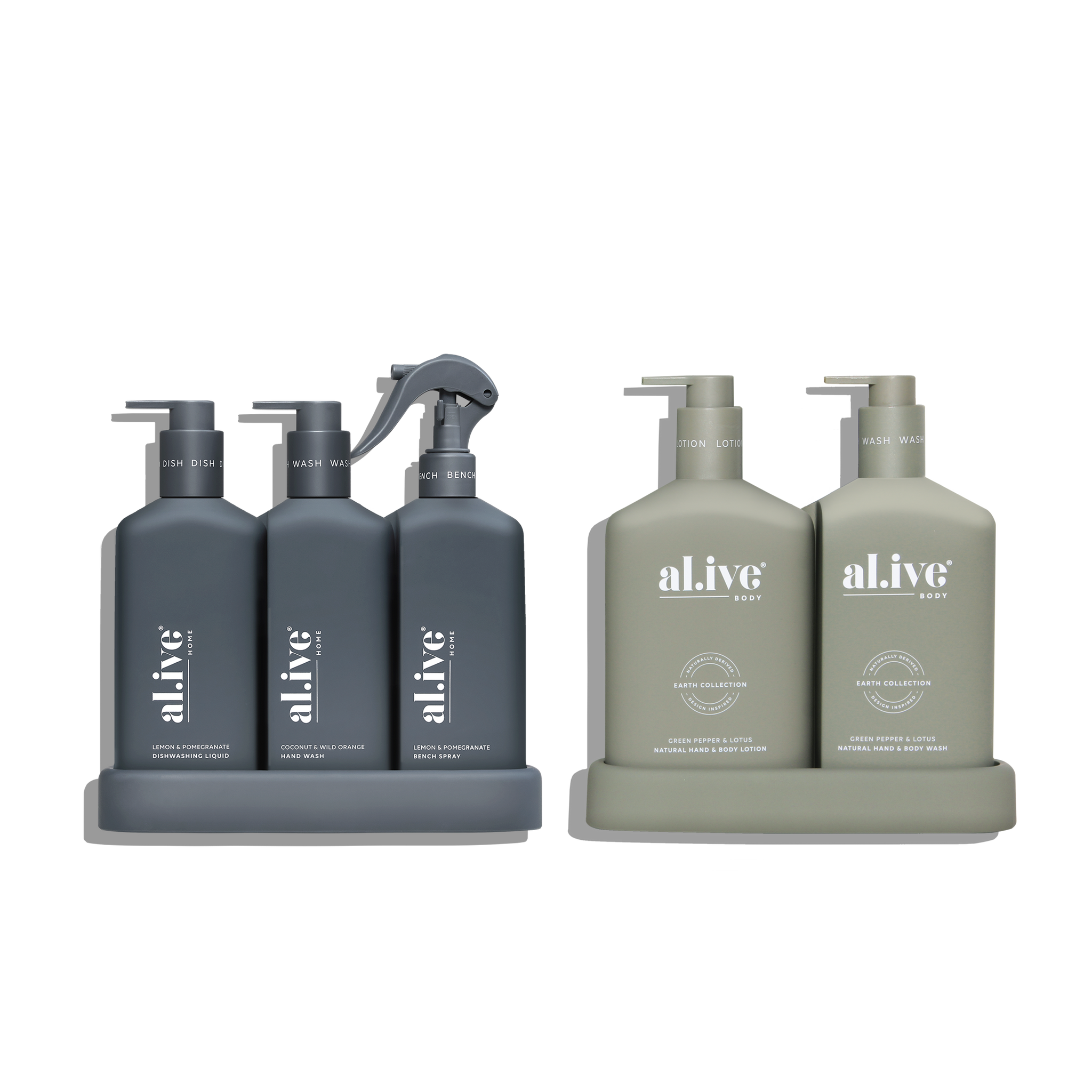 The Kitchen Trio is a complete cleaning kit, featuring a 300ml Dishwashing Liquid, 300ml Bench Spray and 300ml Hand Wash for a comprehensive solution. The Kitchen Duo offers a more compact, streamlined option with just the Dishwashing Liquid and Hand Wash, or the option for a Bench Spray and Hand Wash, ideal for those looking for a simplified setup.