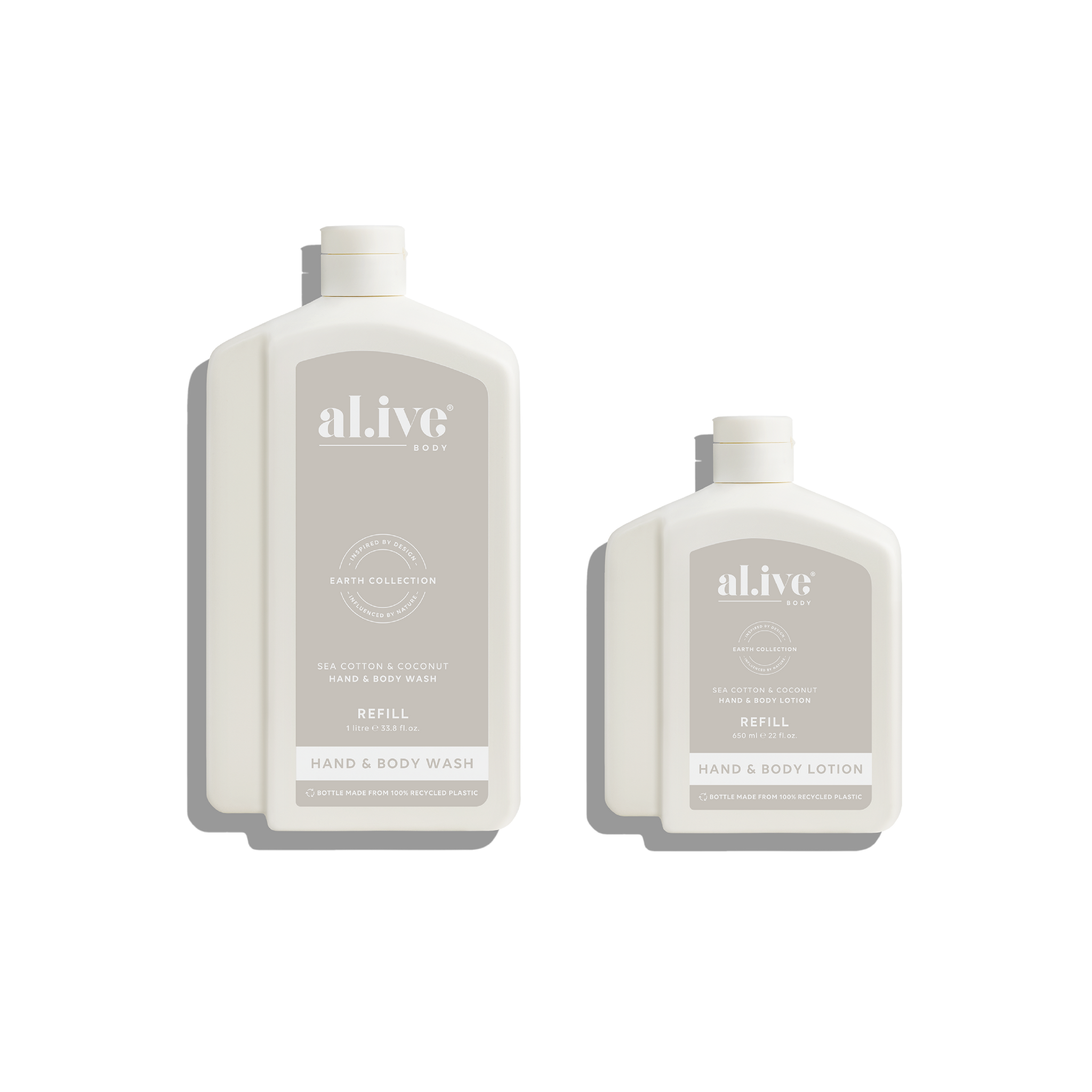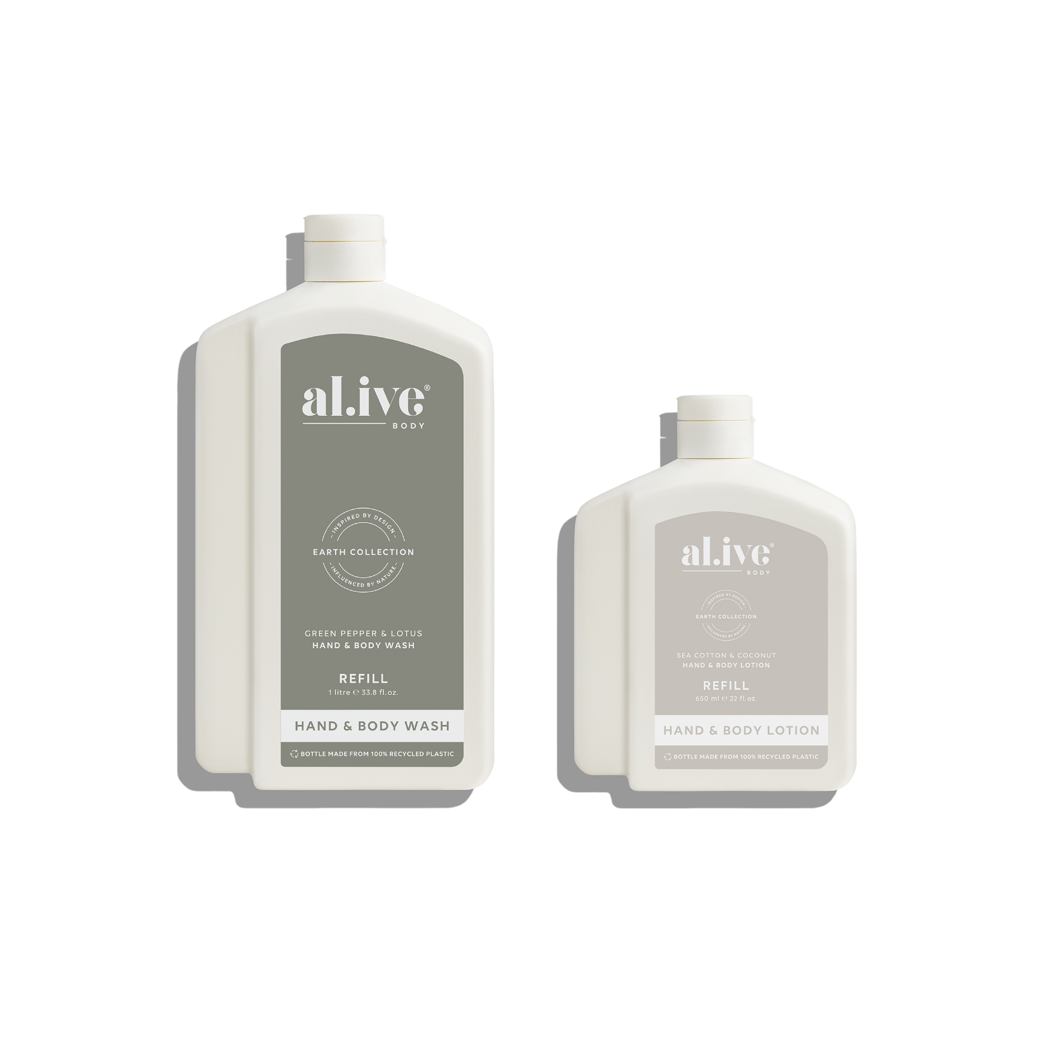 A sustainable solution to replenish your Wash & Lotion Duo while reducing plastic waste. Our refill vessels are made with 100% Post-Consumer Recycled (PCR) plastic and are kerbside recyclable.
