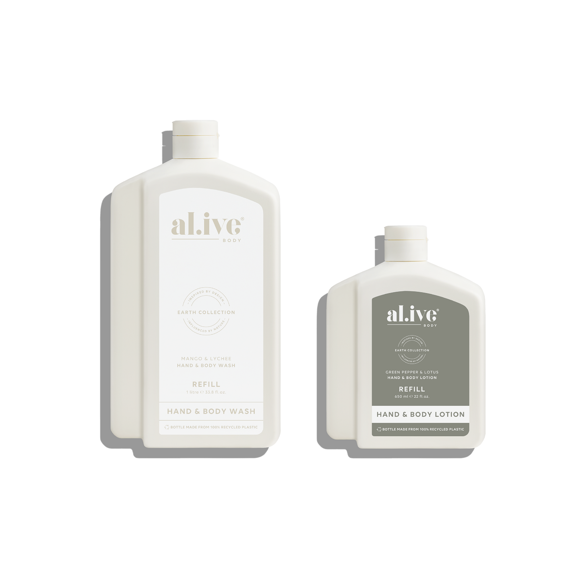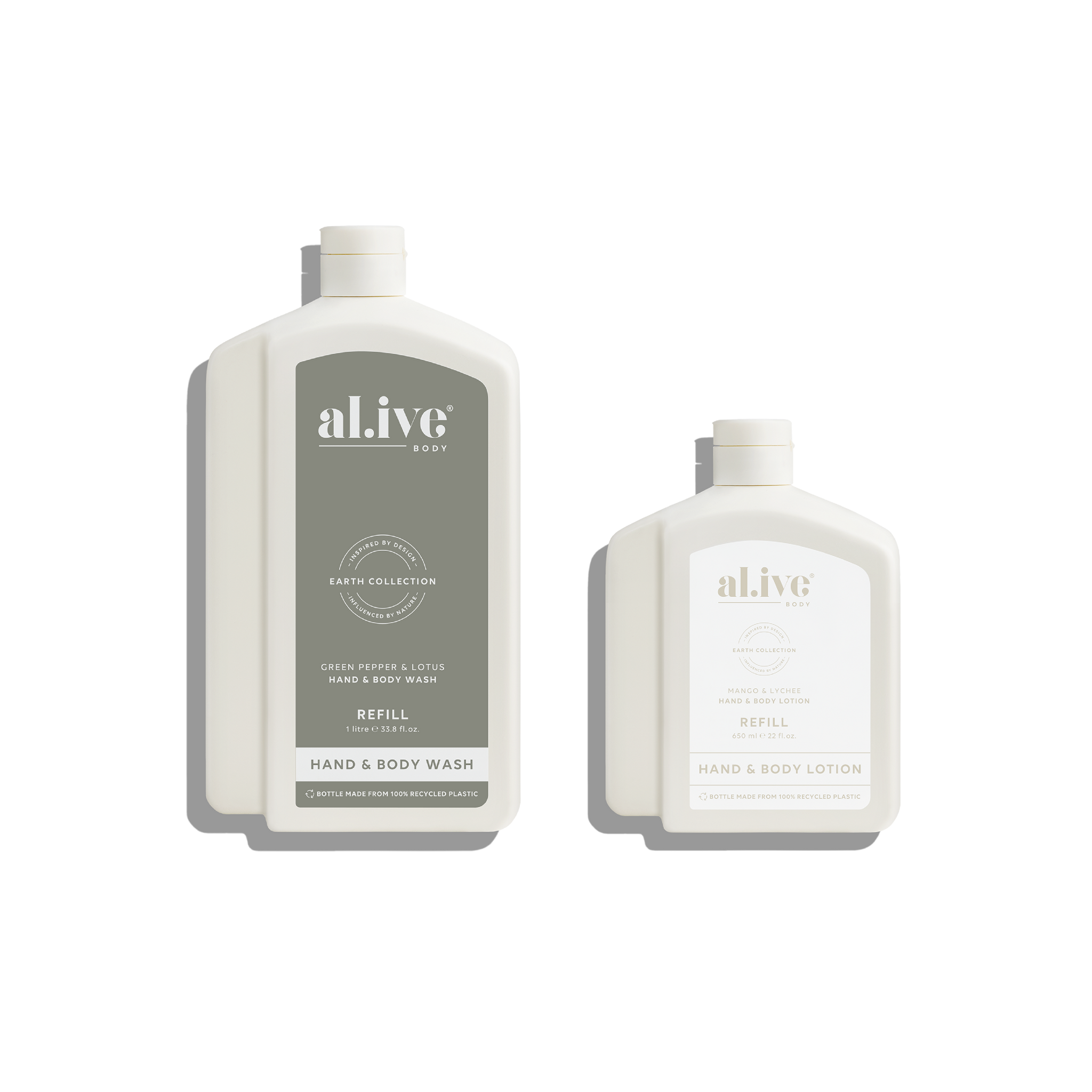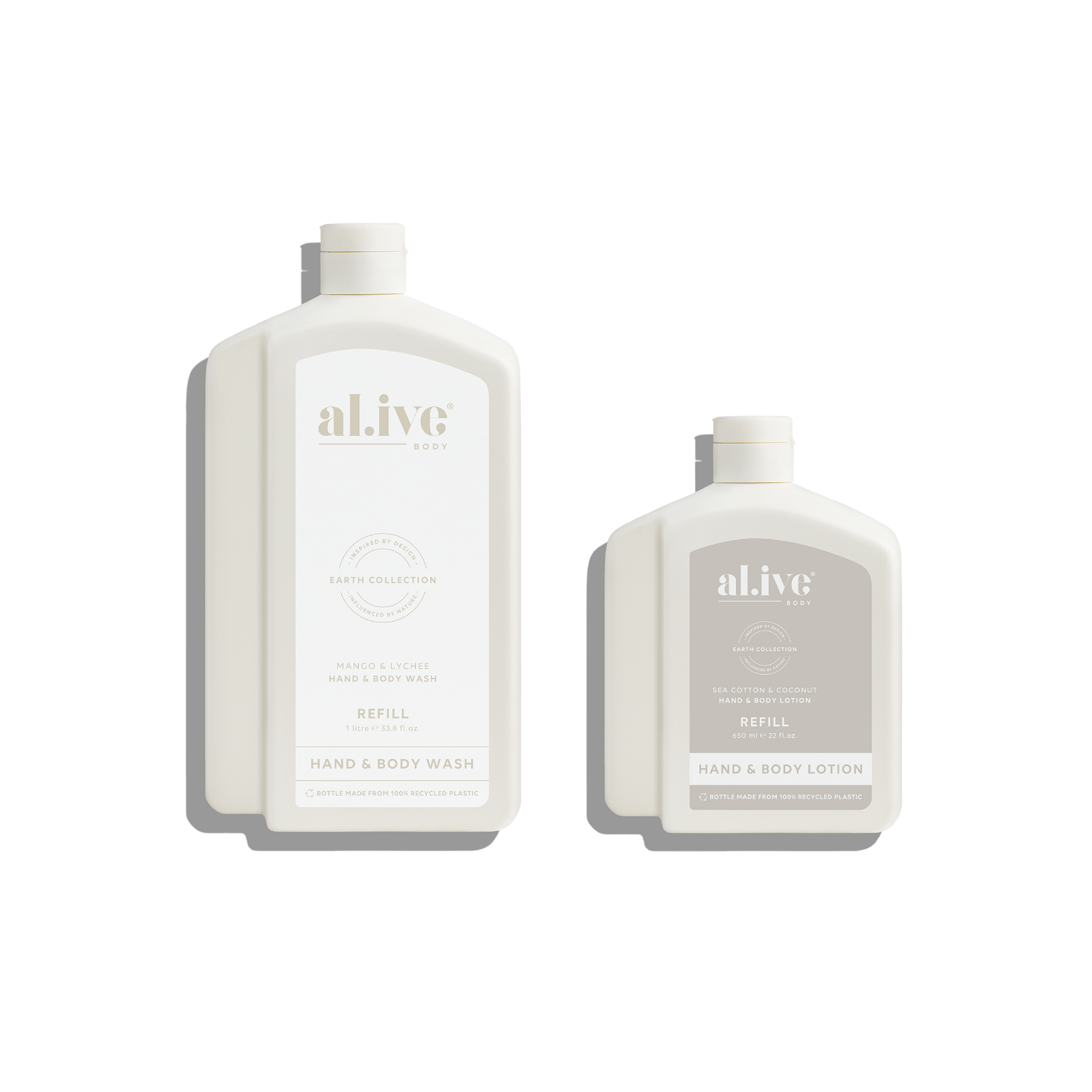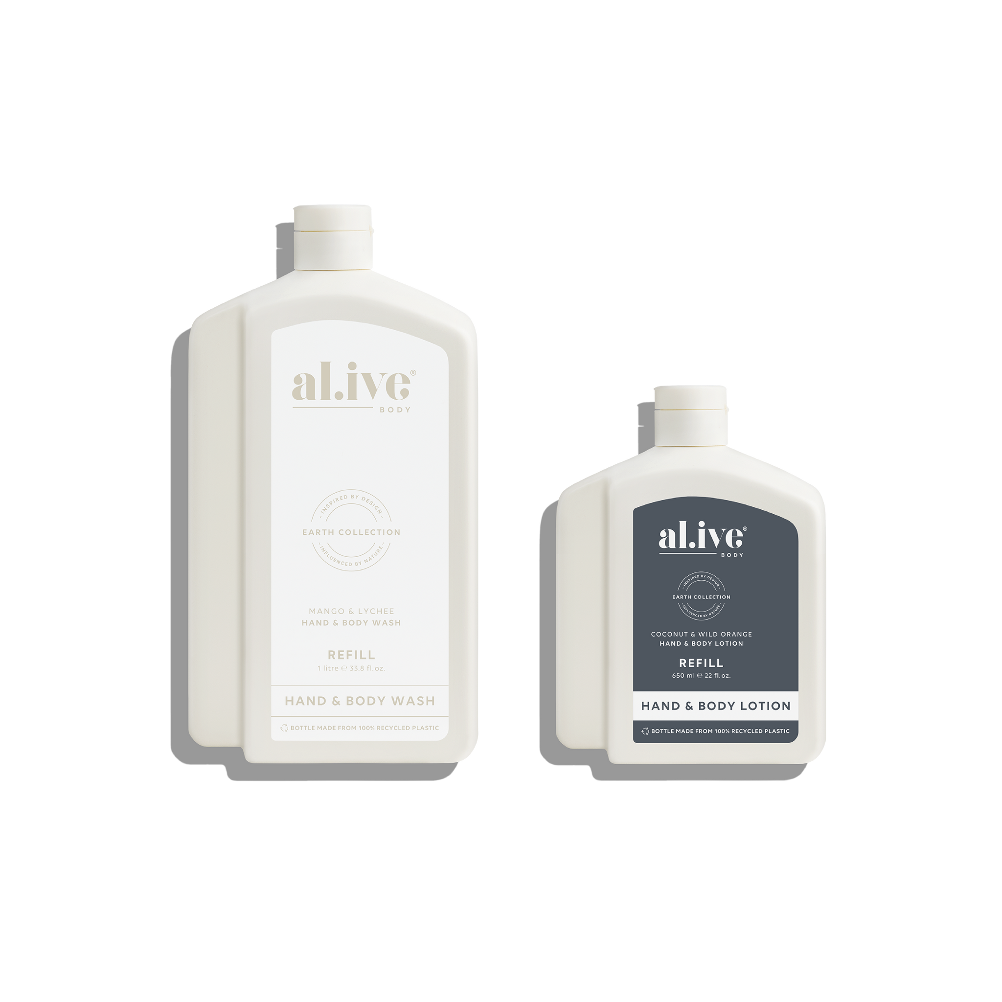 The Wash & Lotion Refill Bundle pairs a 1L Hand & Body Wash Refill with a 650ml Hand & Body Lotion Refill. Choose your preferred scent to top up your existing bottles and continue your favourite hand care ritual, while saving when you bundle both refills together.