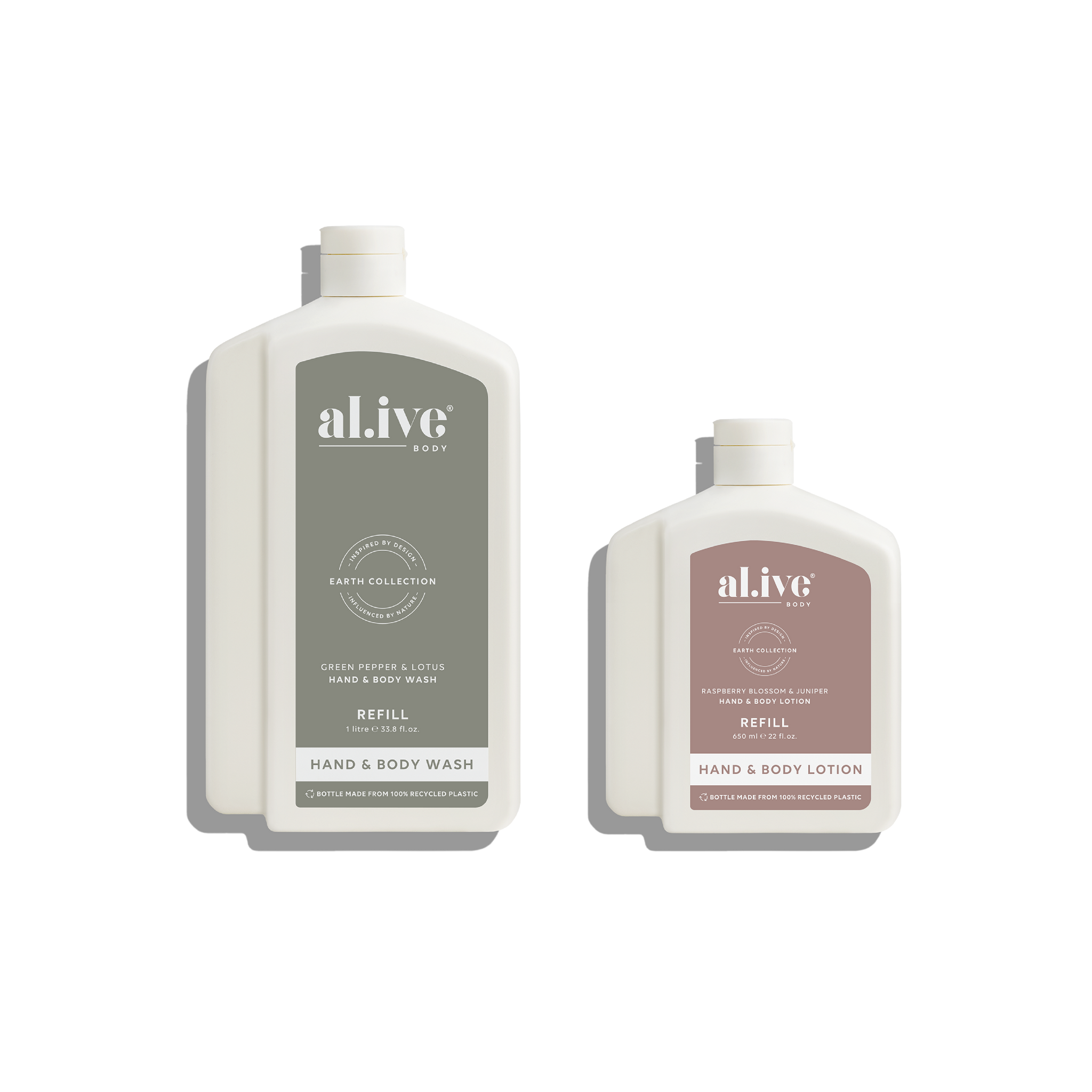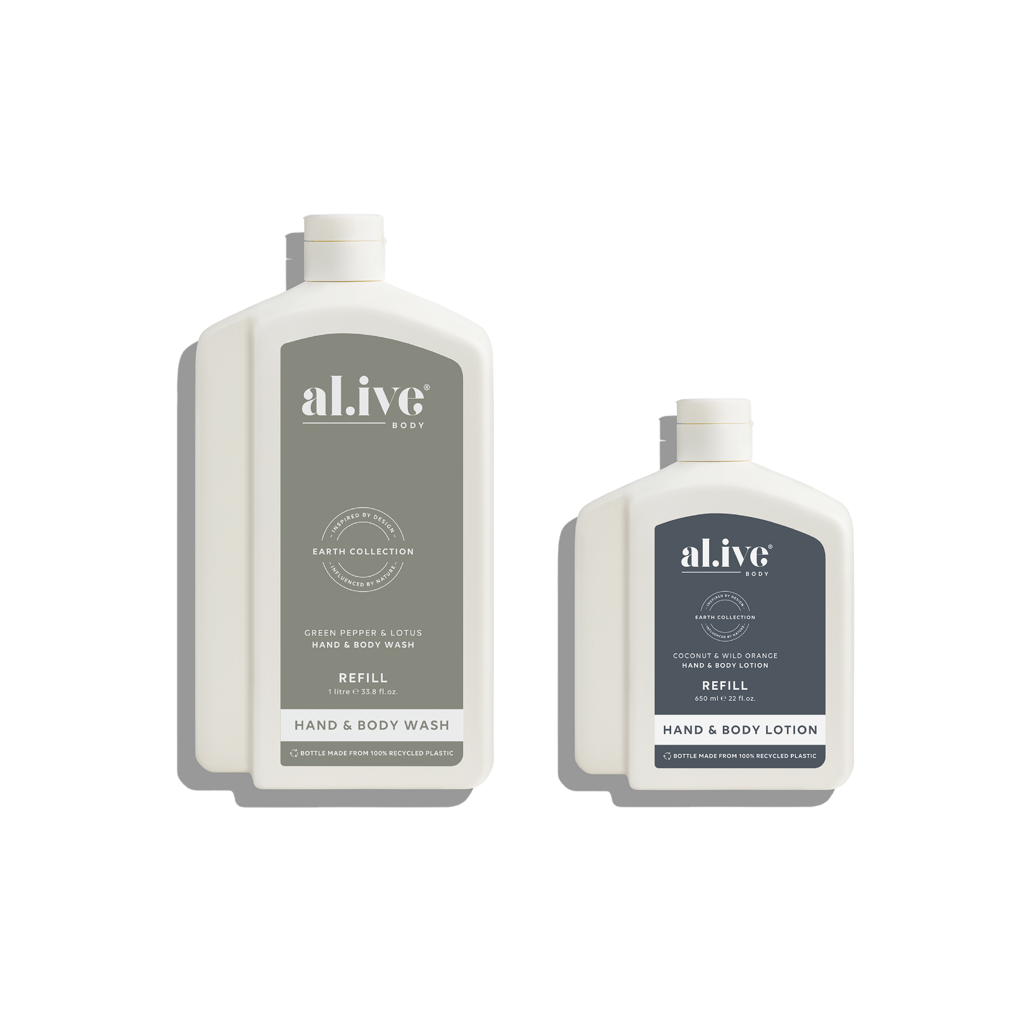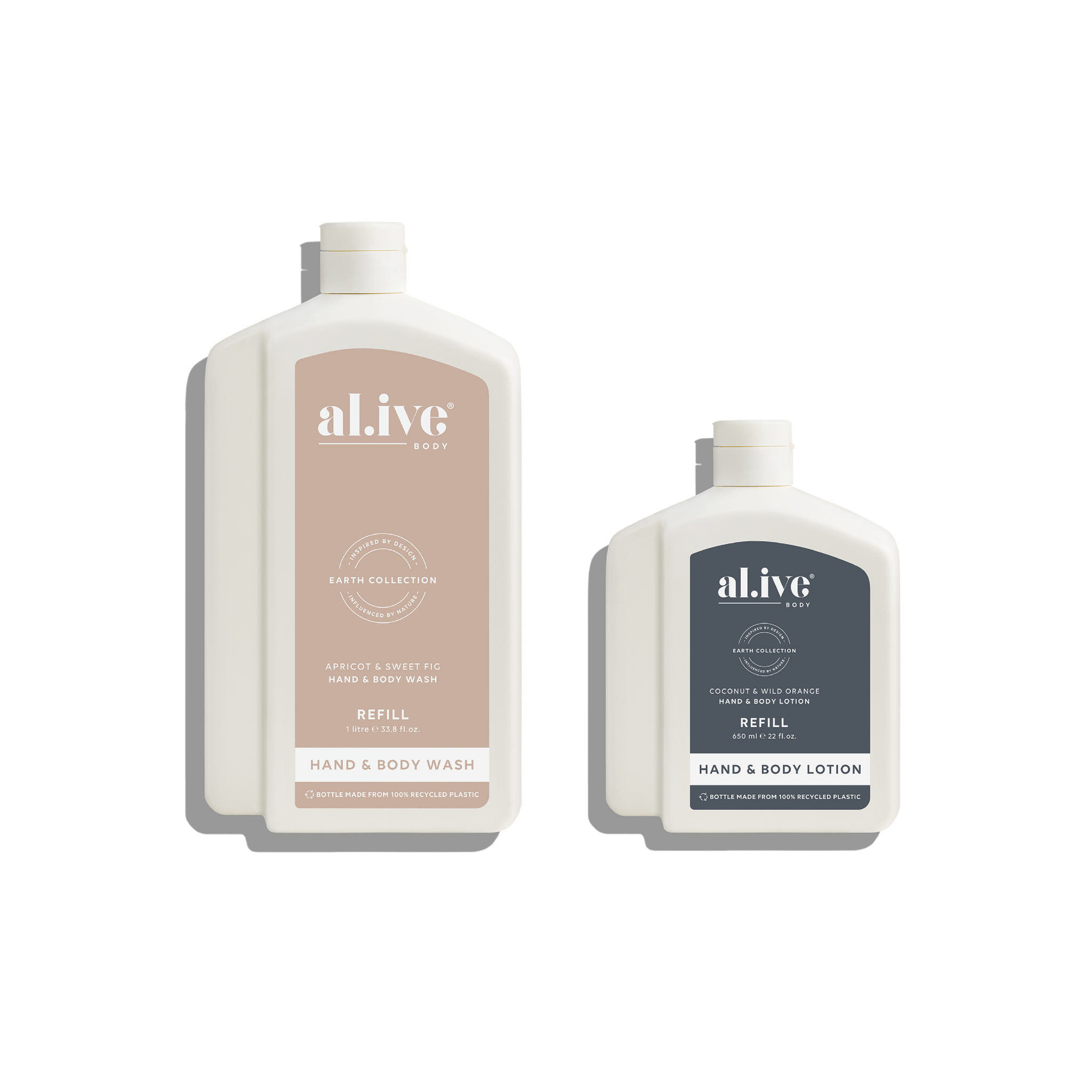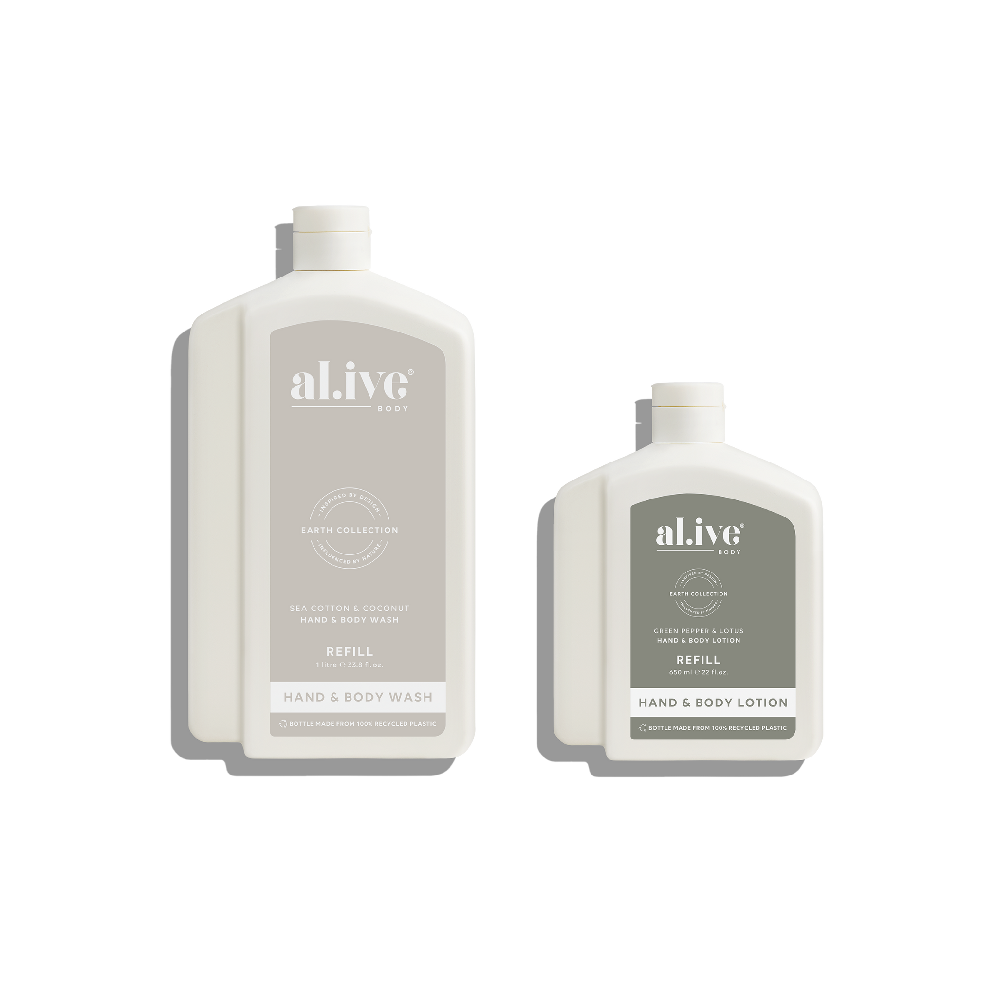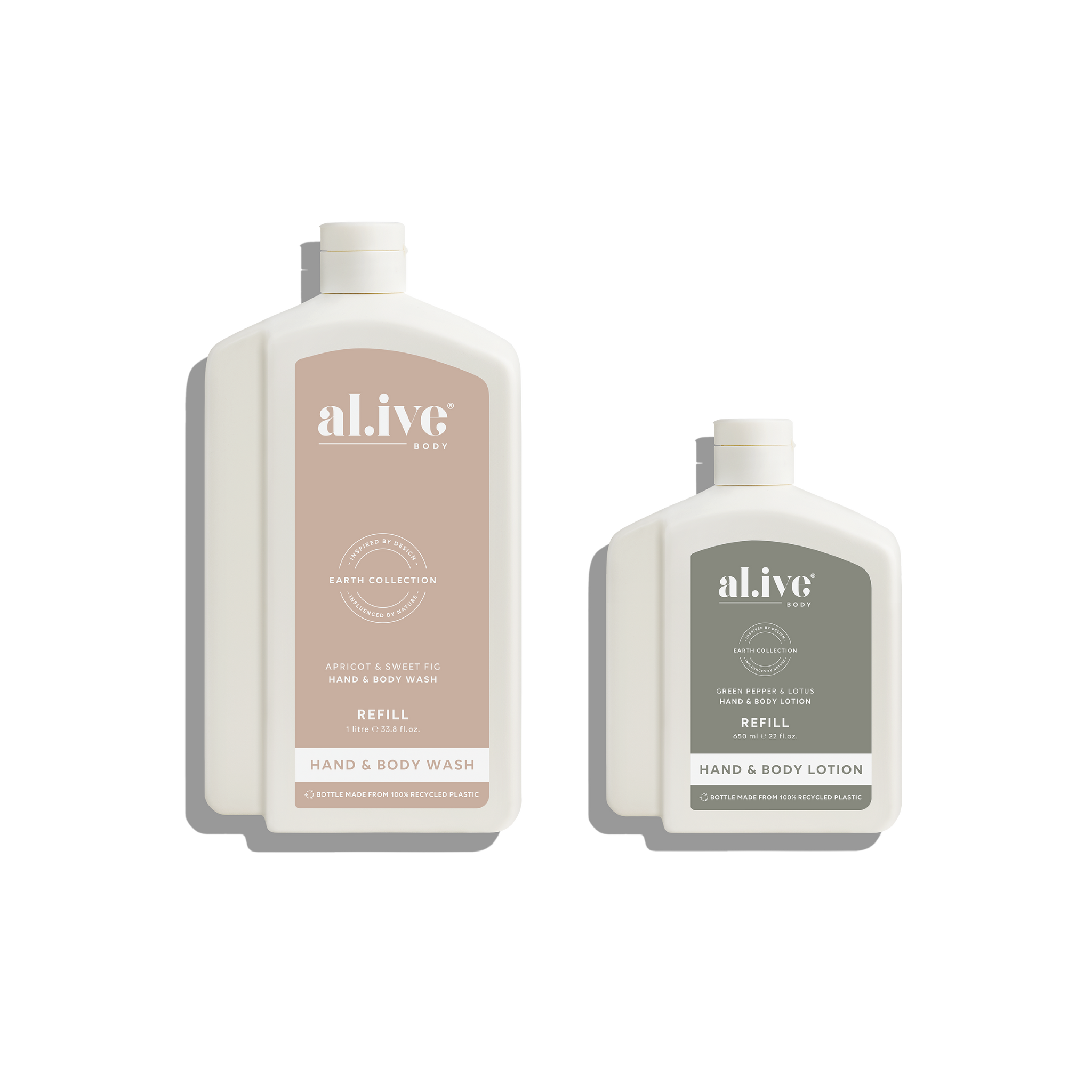 The Wash & Lotion Refill Bundle pairs a 1L Hand & Body Wash Refill with a 650ml Hand & Body Lotion Refill. Choose your preferred scent to top up your existing bottles and continue your favourite hand care ritual, while saving when you bundle both refills together.