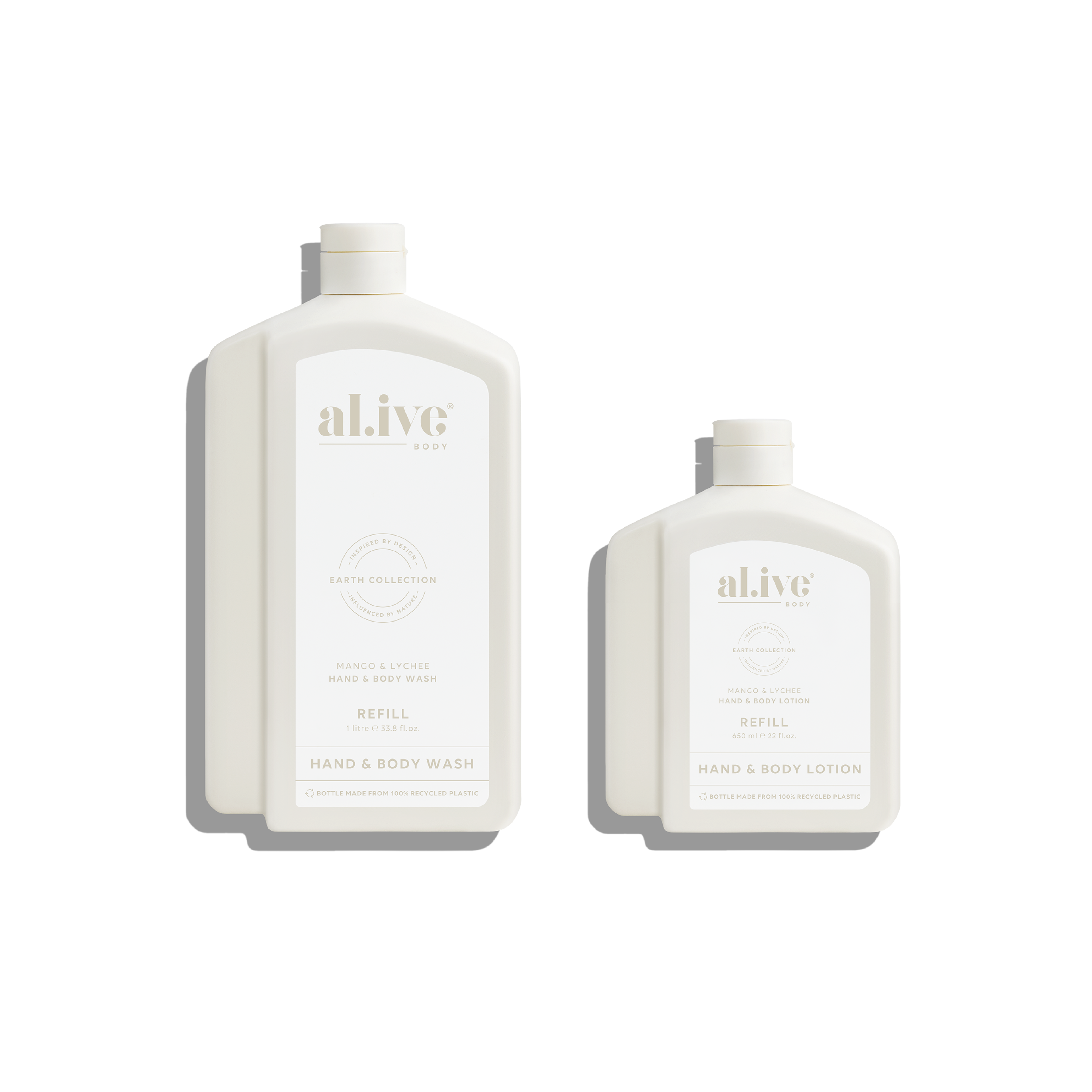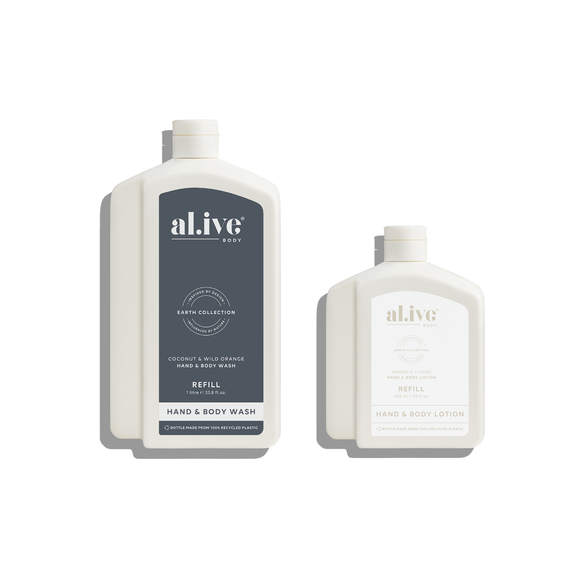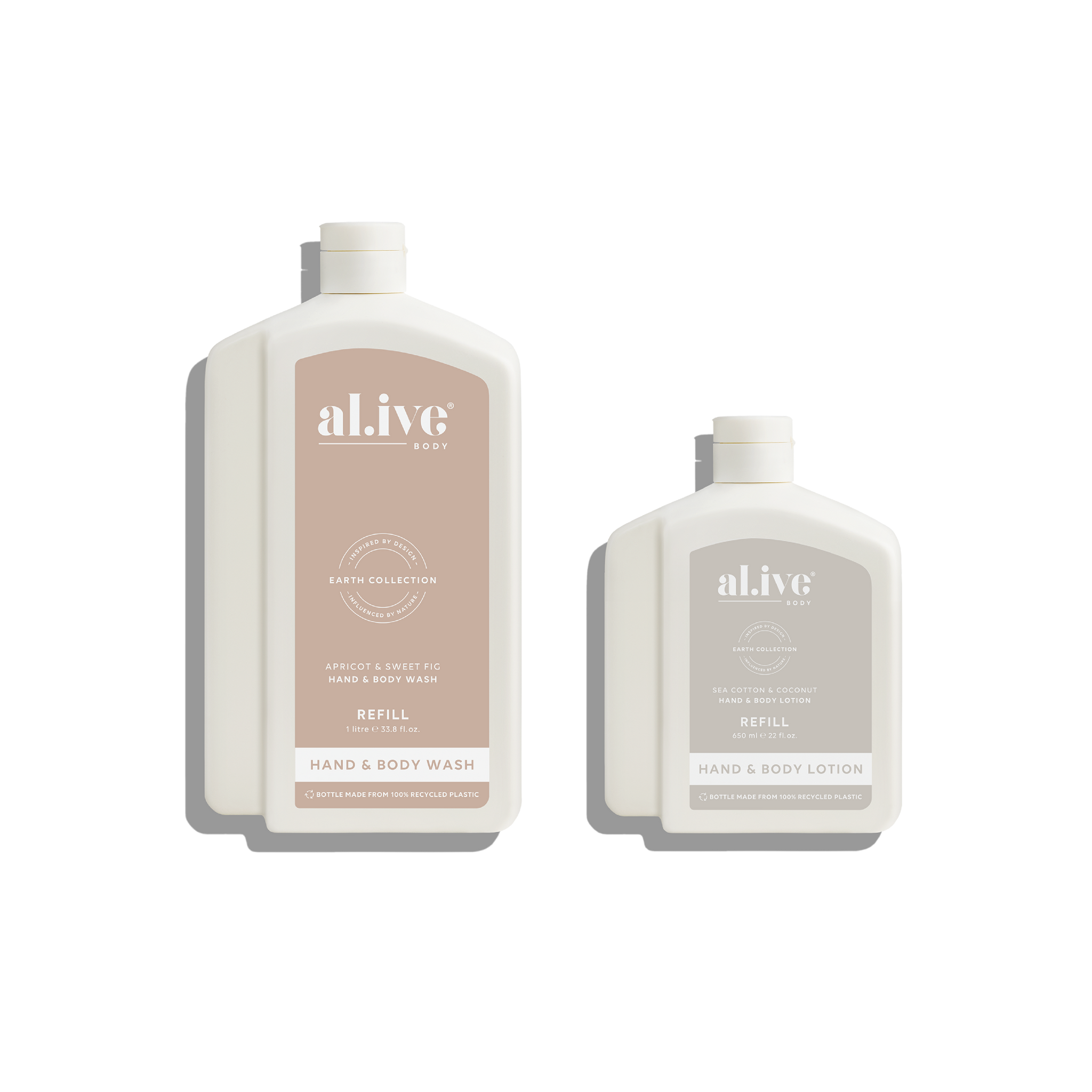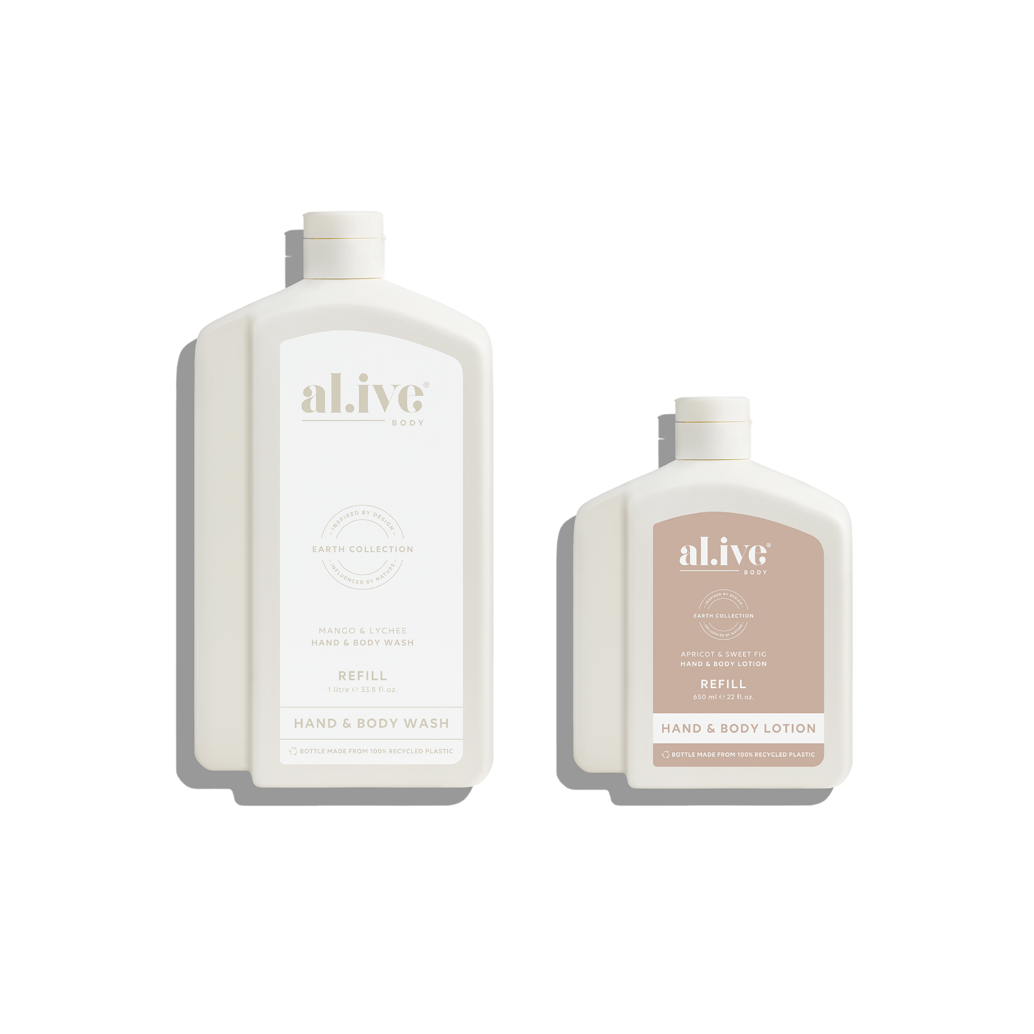 The Wash & Lotion Refill Bundle pairs a 1L Hand & Body Wash Refill with a 650ml Hand & Body Lotion Refill. Choose your preferred scent to top up your existing bottles and continue your favourite hand care ritual, while saving when you bundle both refills together.