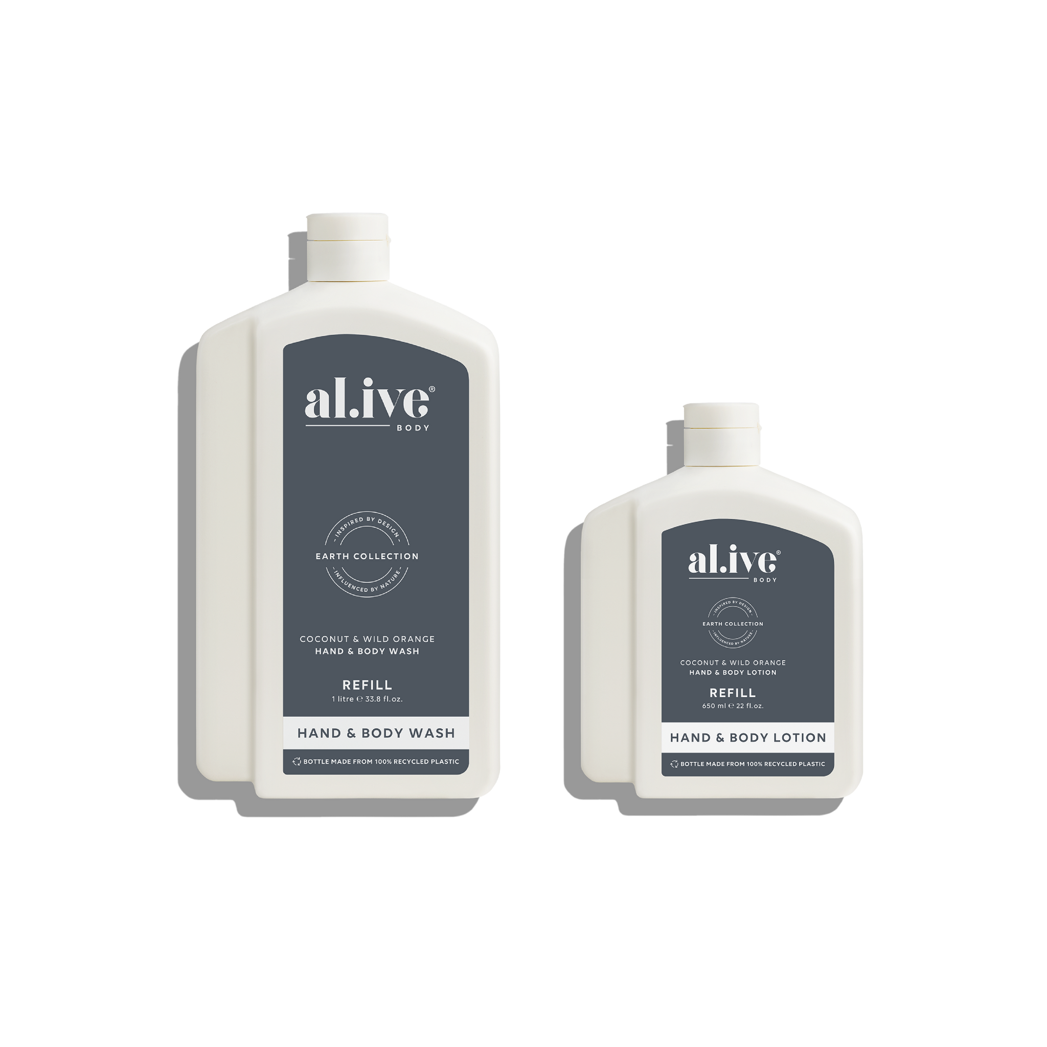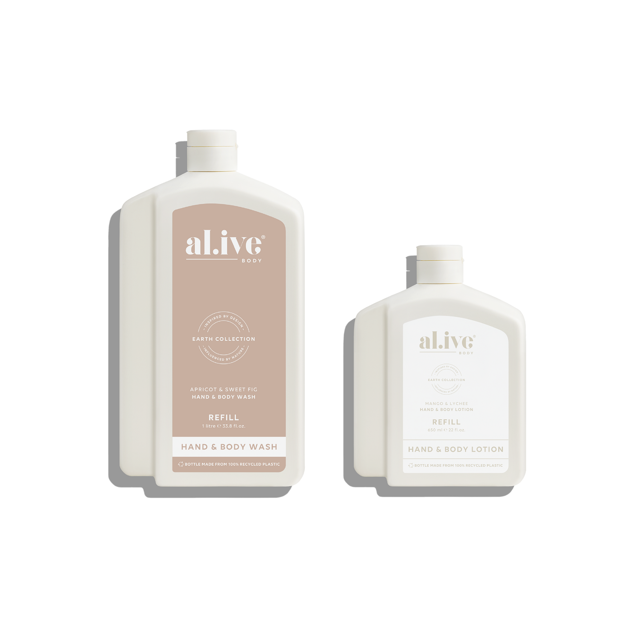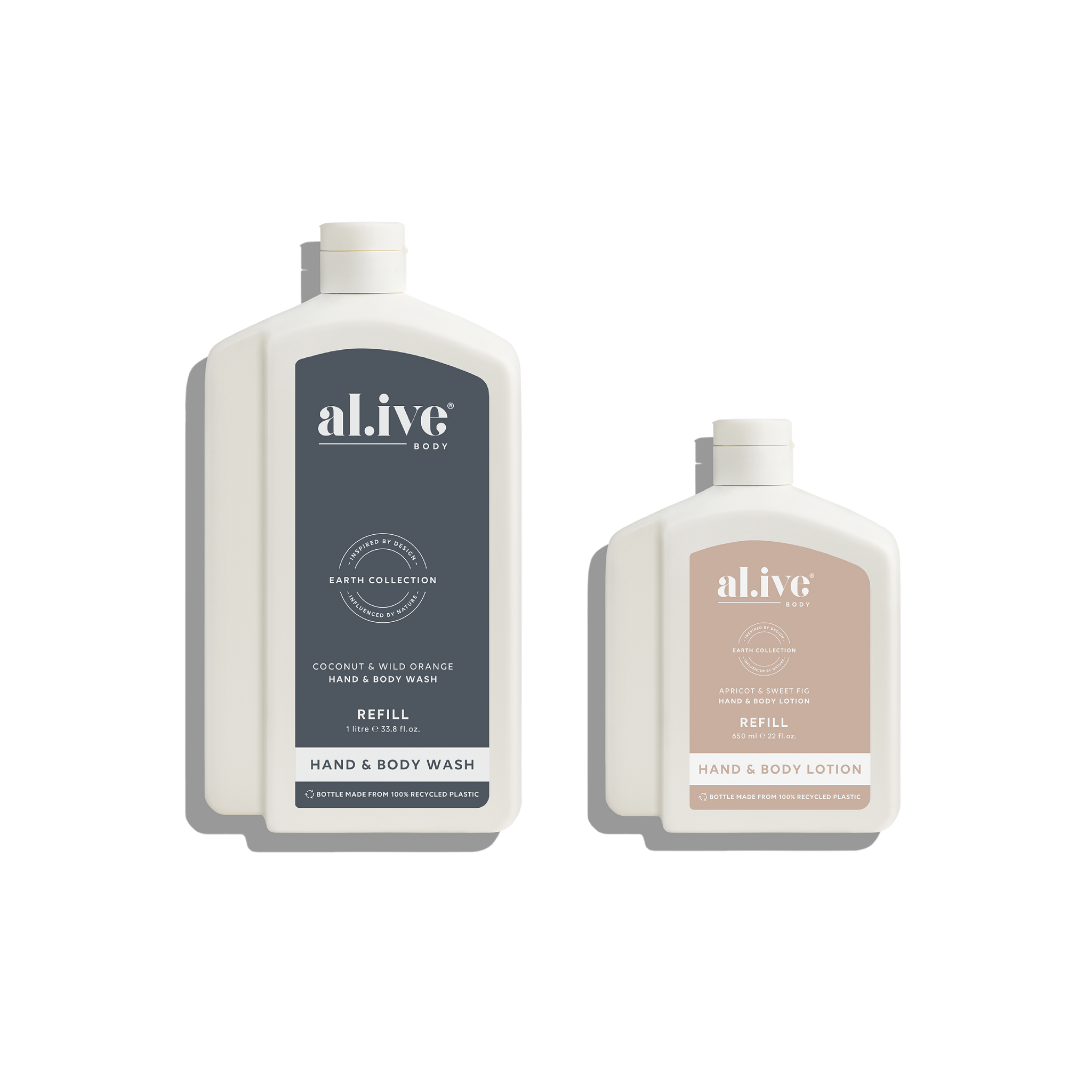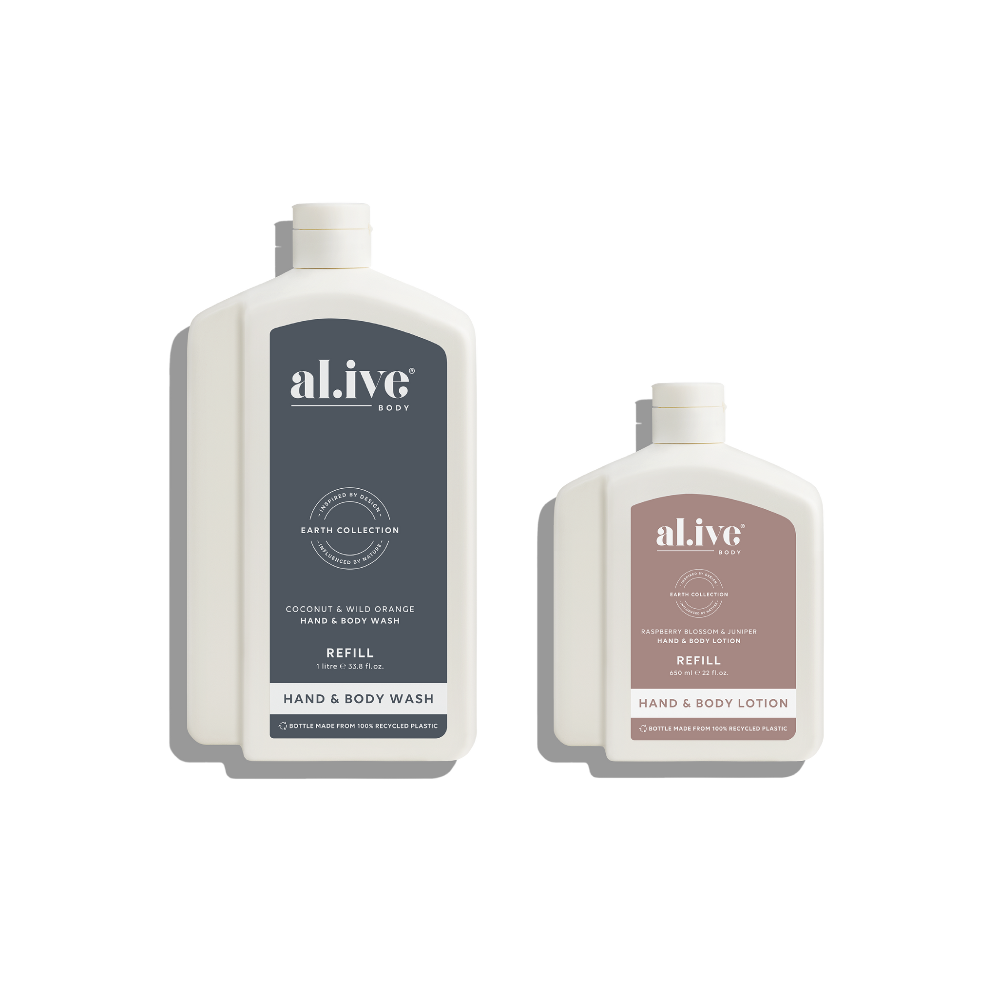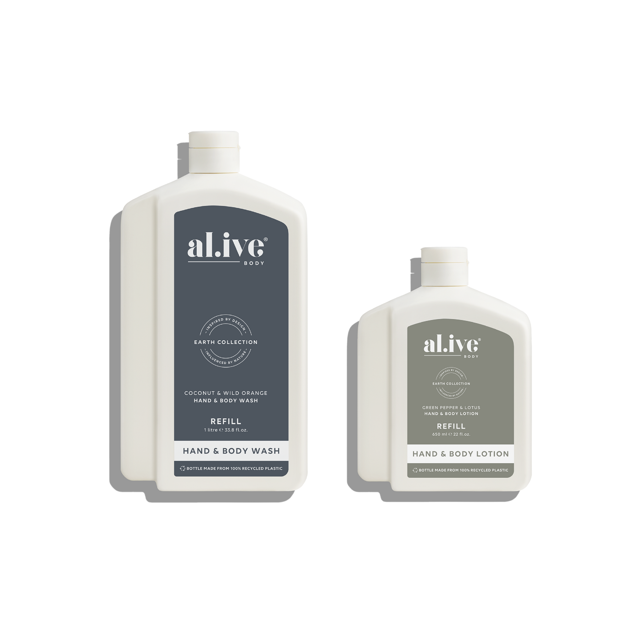 The Wash & Lotion Refill Bundle pairs a 1L Hand & Body Wash Refill with a 650ml Hand & Body Lotion Refill. Choose your preferred scent to top up your existing bottles and continue your favourite hand care ritual, while saving when you bundle both refills together.