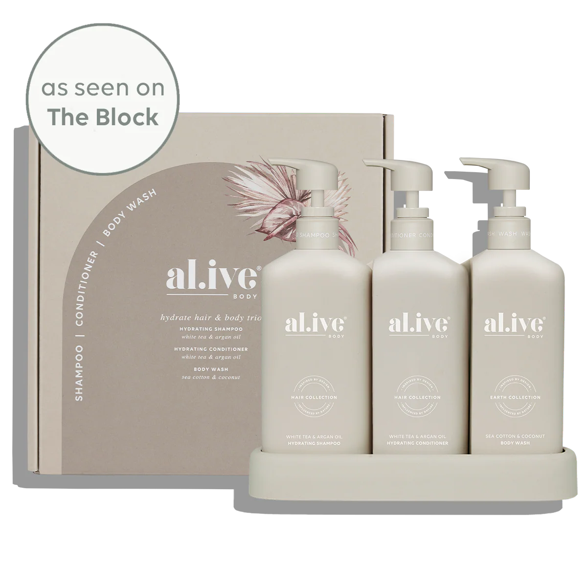 Conditioner: For best results use after shampooing with al.ive body White Tea & Argan Oil Hydrating Shampoo. Dispense product into hand and apply to mid-lengths and ends of hair. Leave on for 2-3 minutes before rinsing thoroughly with water.