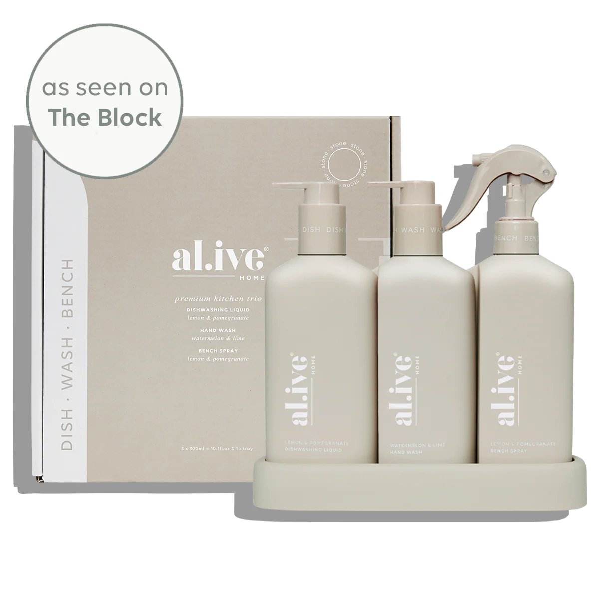 Introducing our Kitchen Trio - the ultimate solution for your kitchen cleaning needs. This set includes our Dishwashing Liquid, Bench Spray, and Hand Wash, all conveniently nestled within a beautifully designed custom tray.