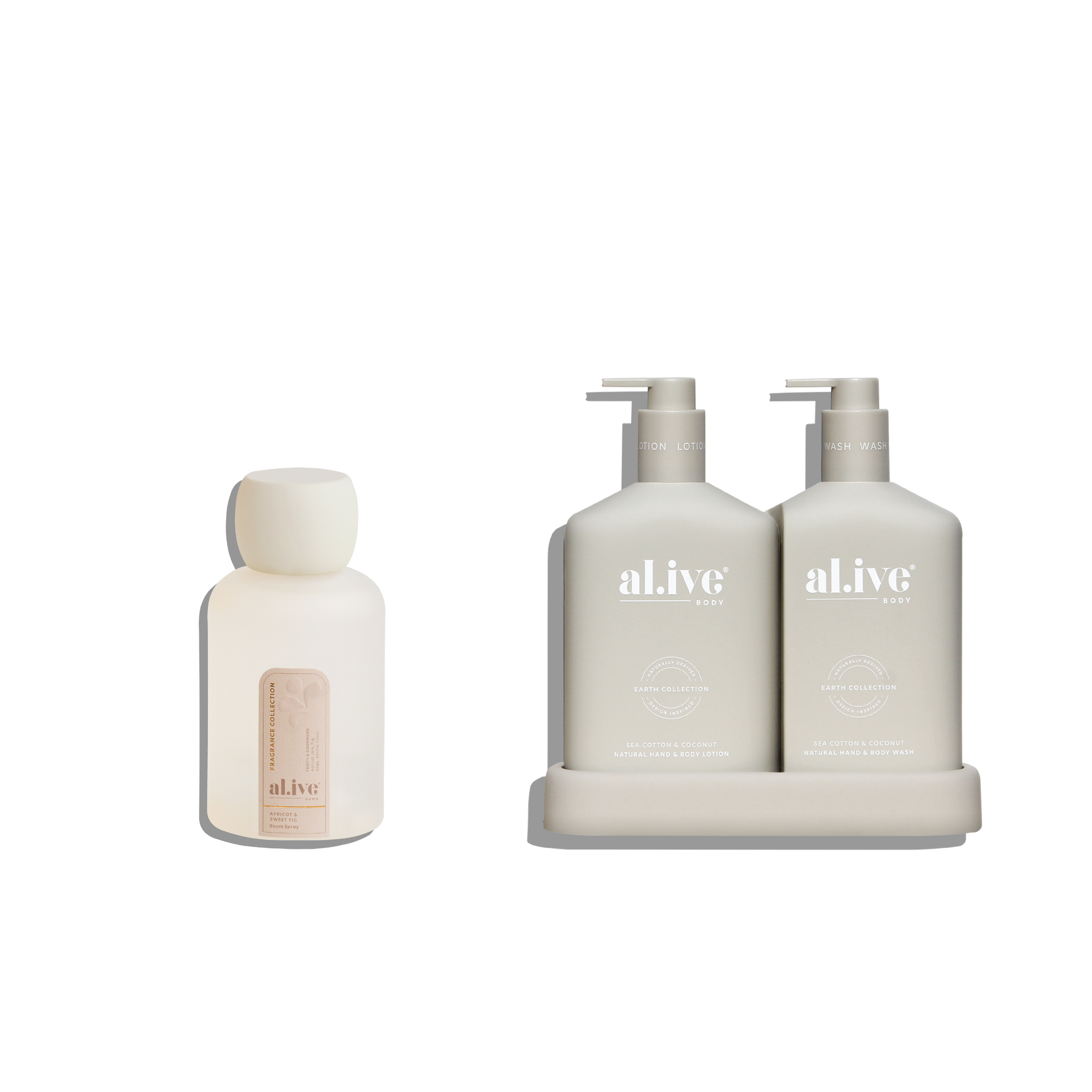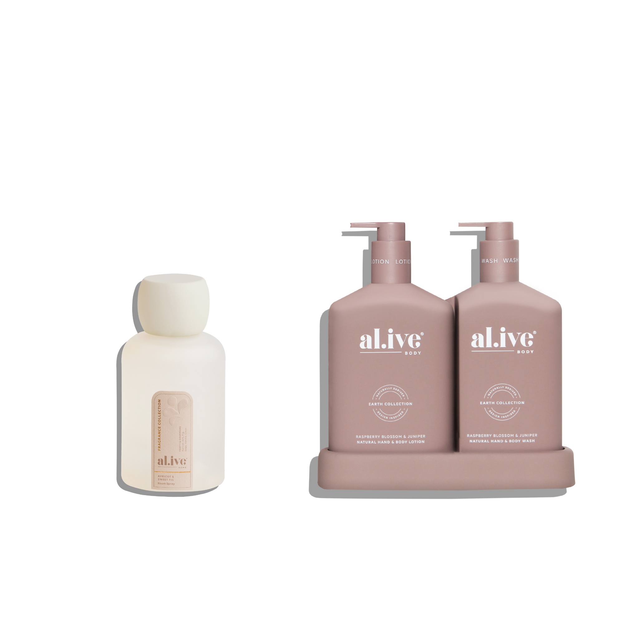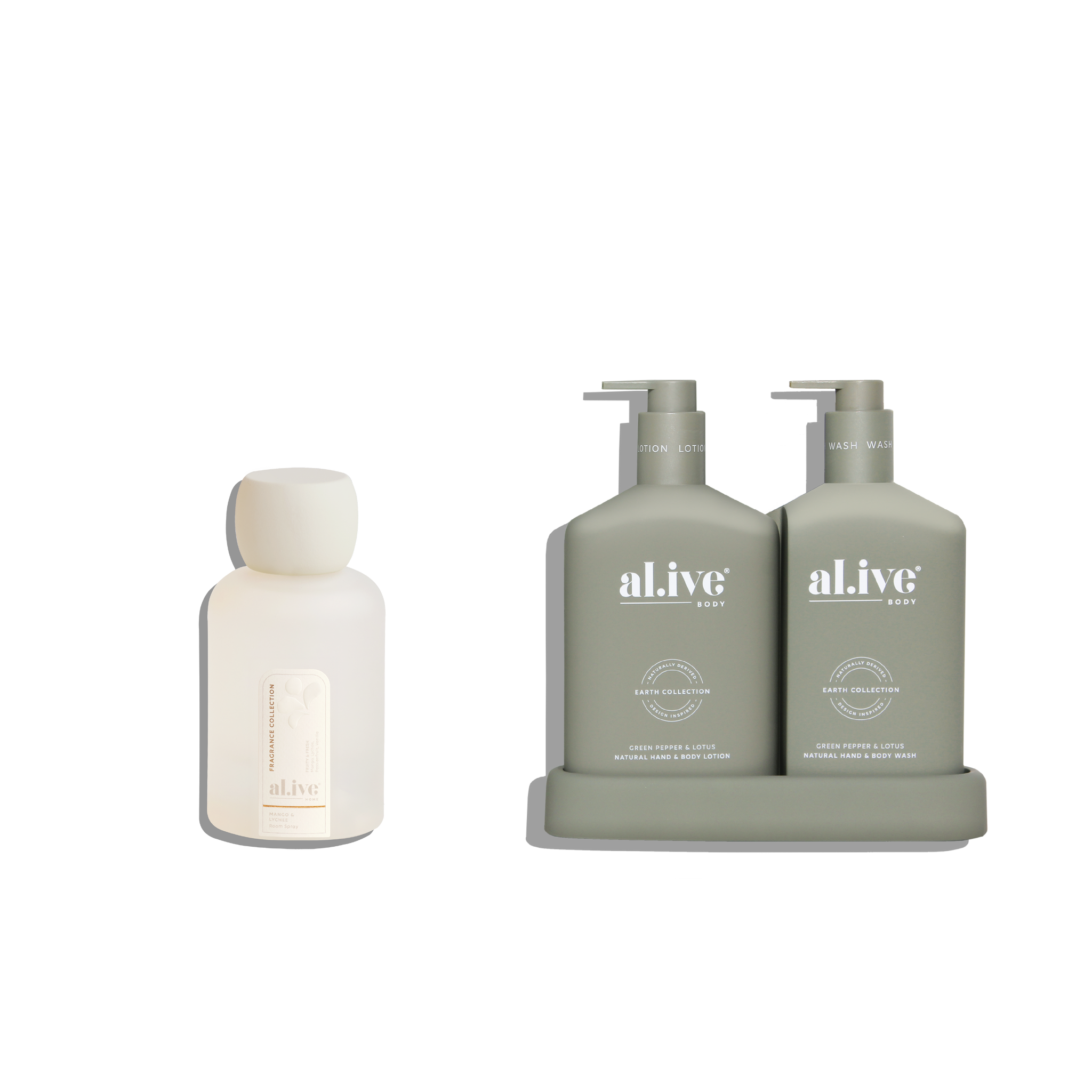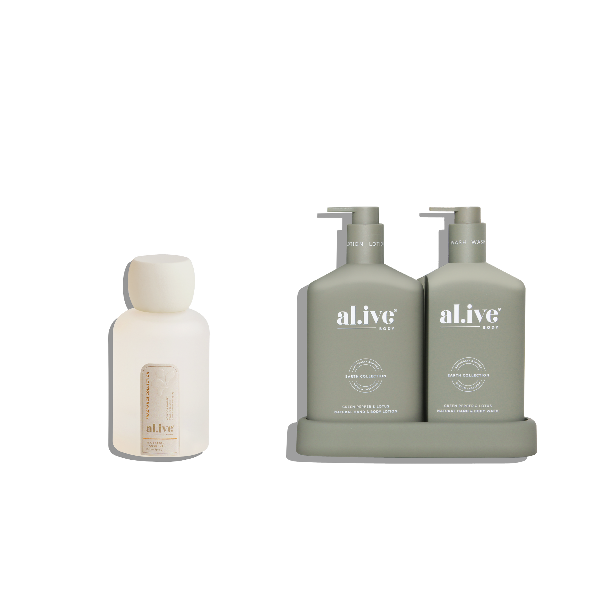 The Duo & Room Spray Bundle combines our signature Bathroom Duo with a Room Spray to bring cohesion and fragrance to your home. Customisable to your preferred scent and colourway, this bundle enhances both your routine and saves $13.