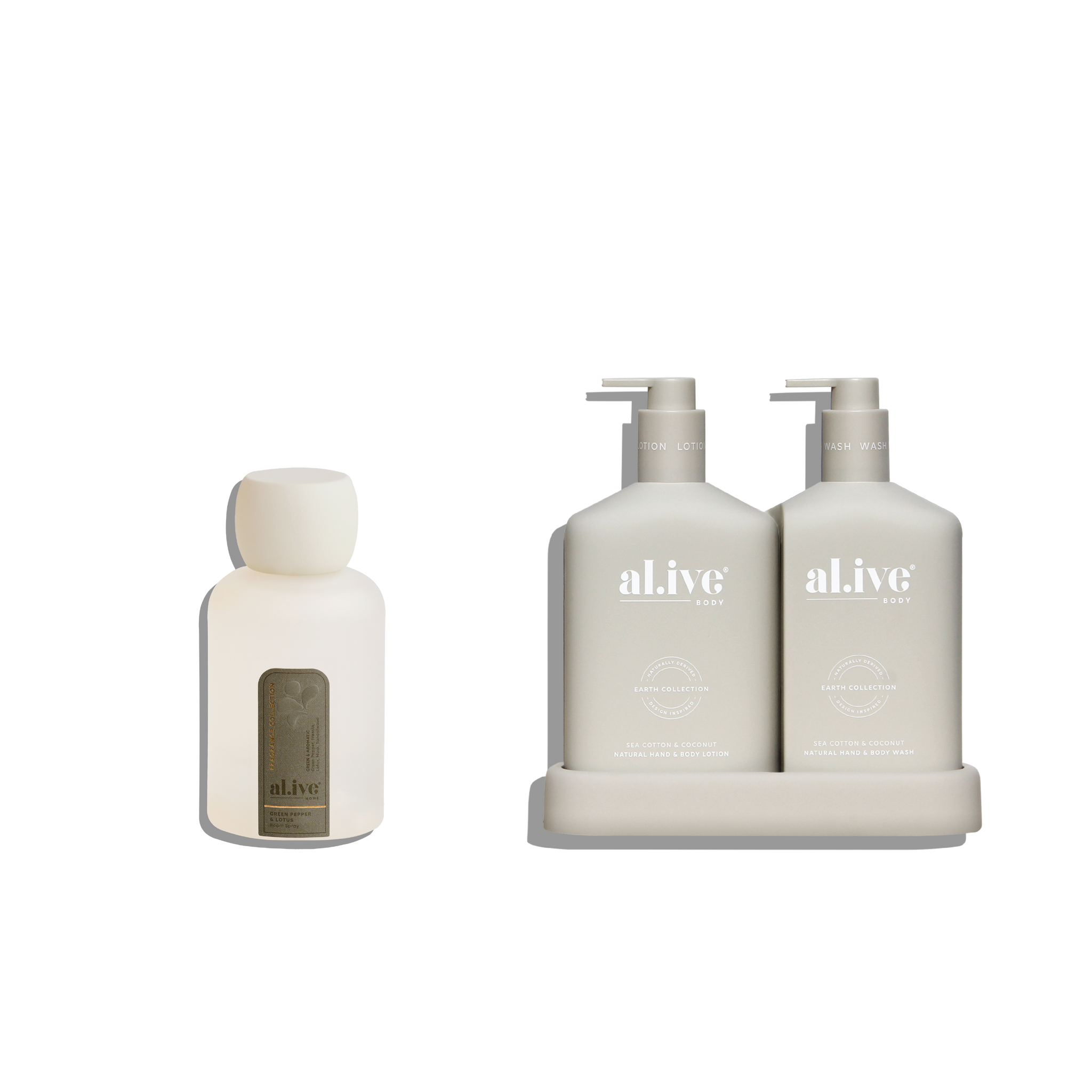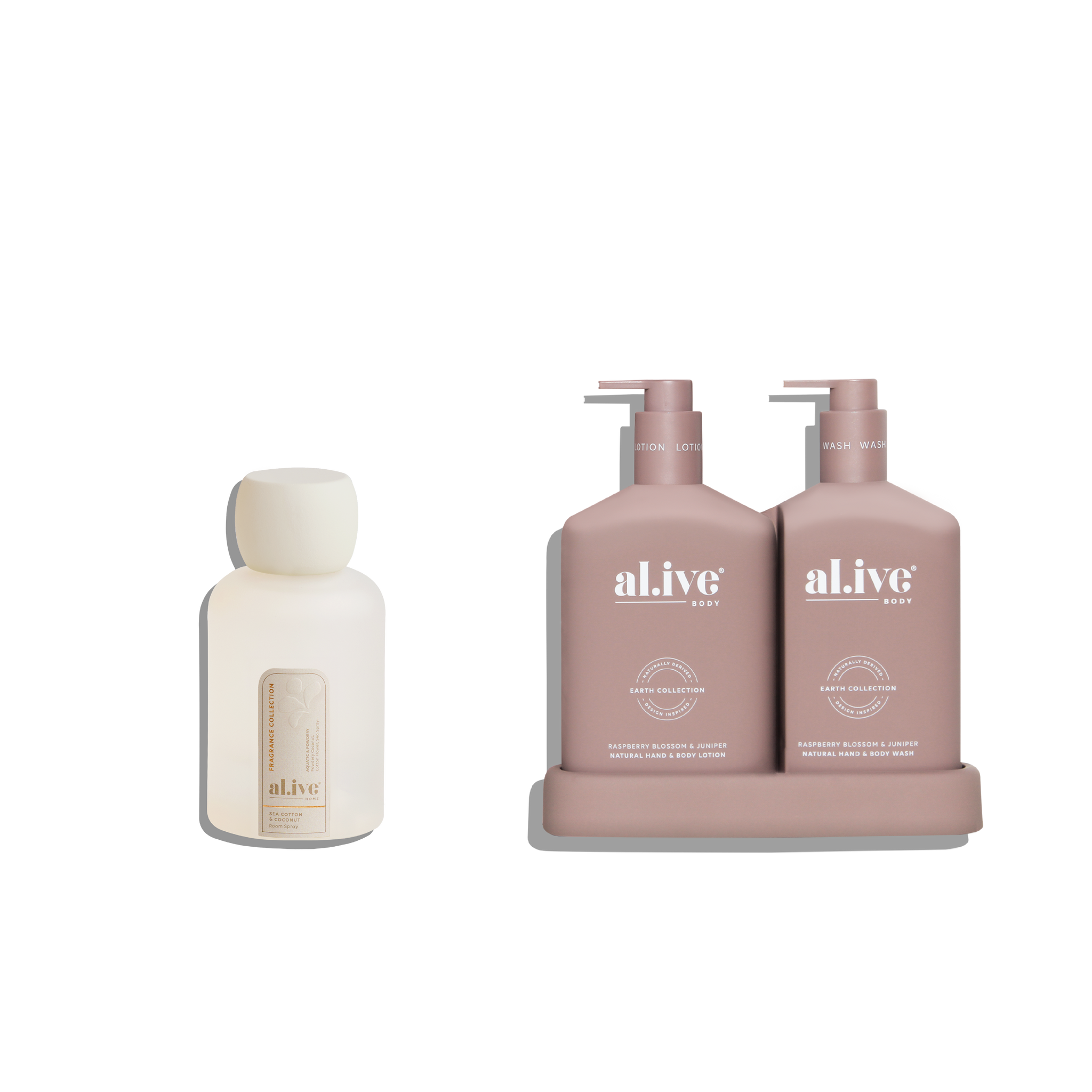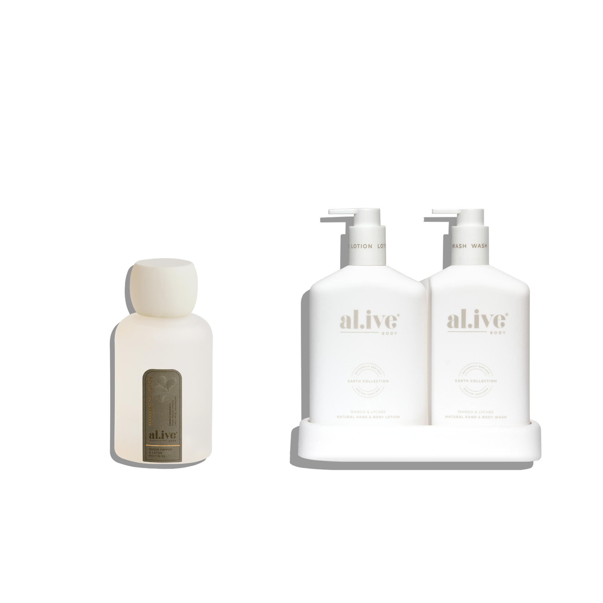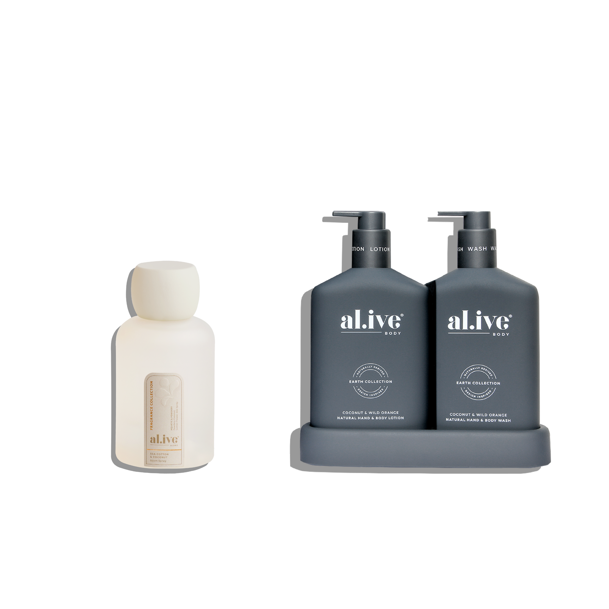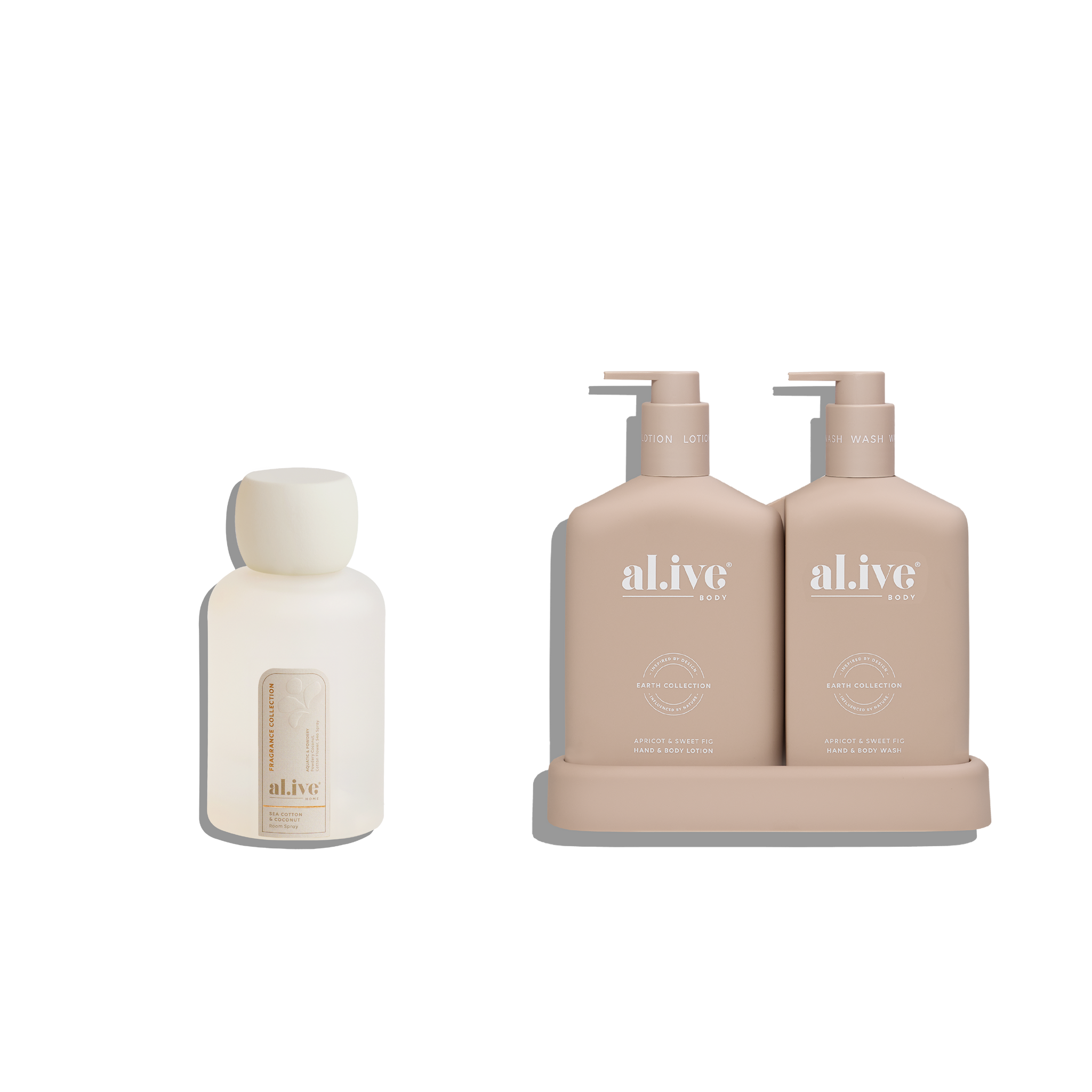 The Duo & Room Spray Bundle combines our signature Bathroom Duo with a Room Spray to bring cohesion and fragrance to your home. Customisable to your preferred scent and colourway, this bundle enhances both your routine and saves $13.