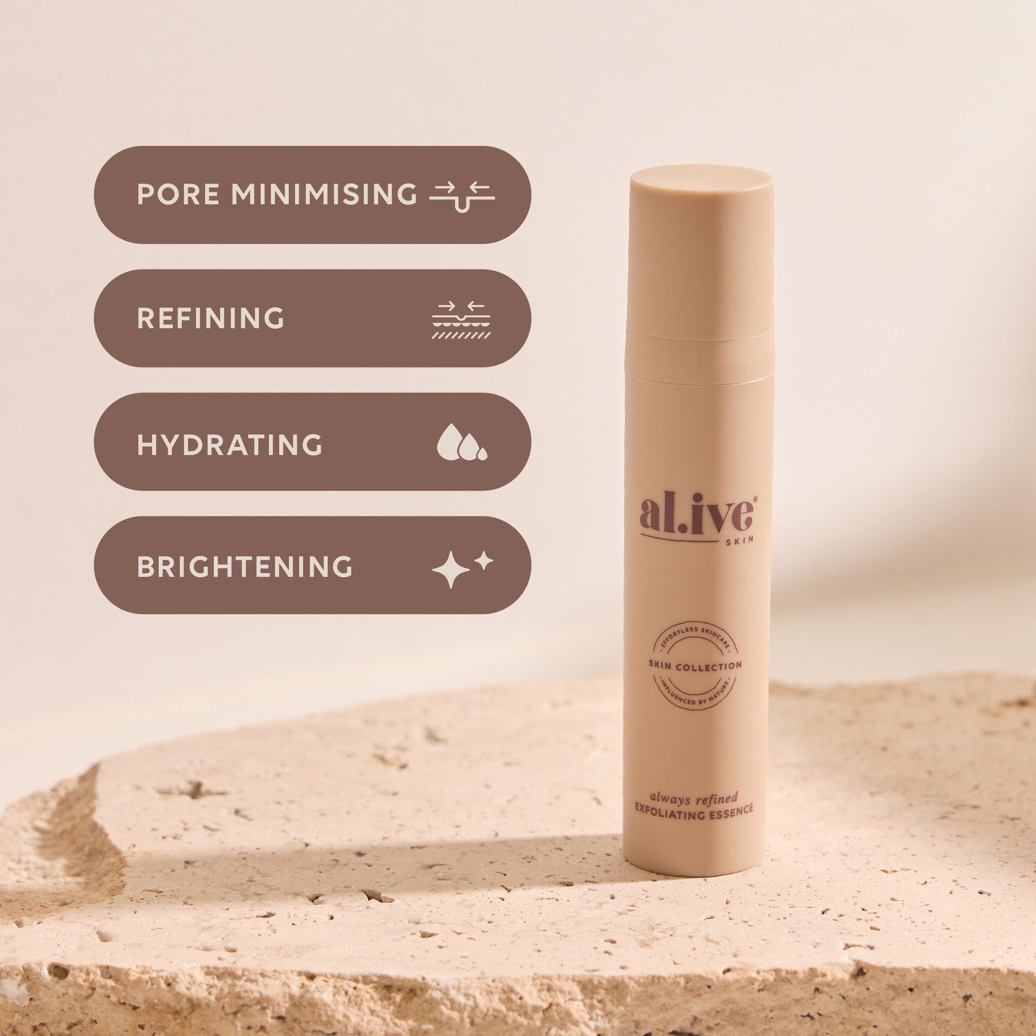 Always Refined, Exfoliating Essence is an active, yet gentle skin-perfecting chemical exfoliator that effortlessly helps to renew skin to reveal a brighter and bouncier complexion.