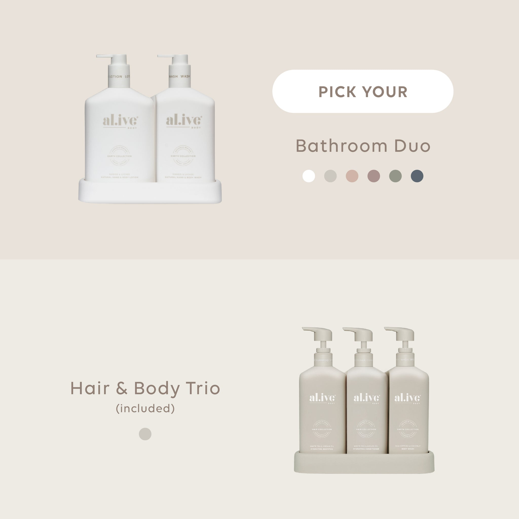 The Bathroom Essentials Bundle combines two daily care essentials, designed for those who value both functionality and style. Customisable to suit your preferences, it allows you to create a coordinated bathroom routine with ease.