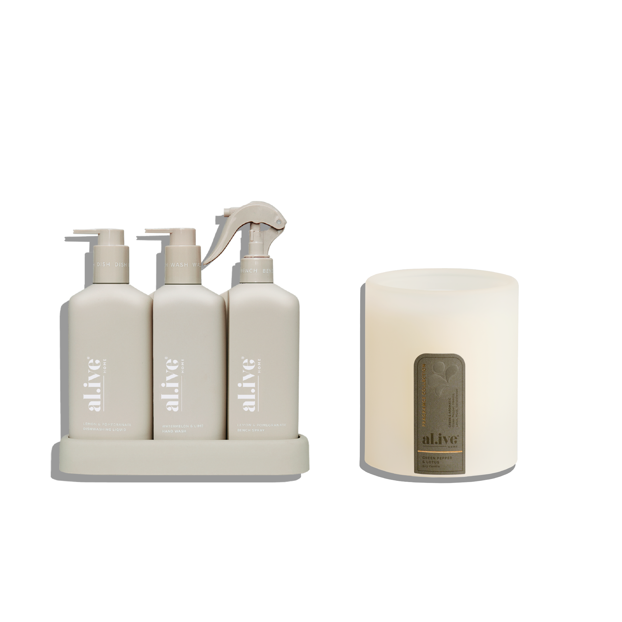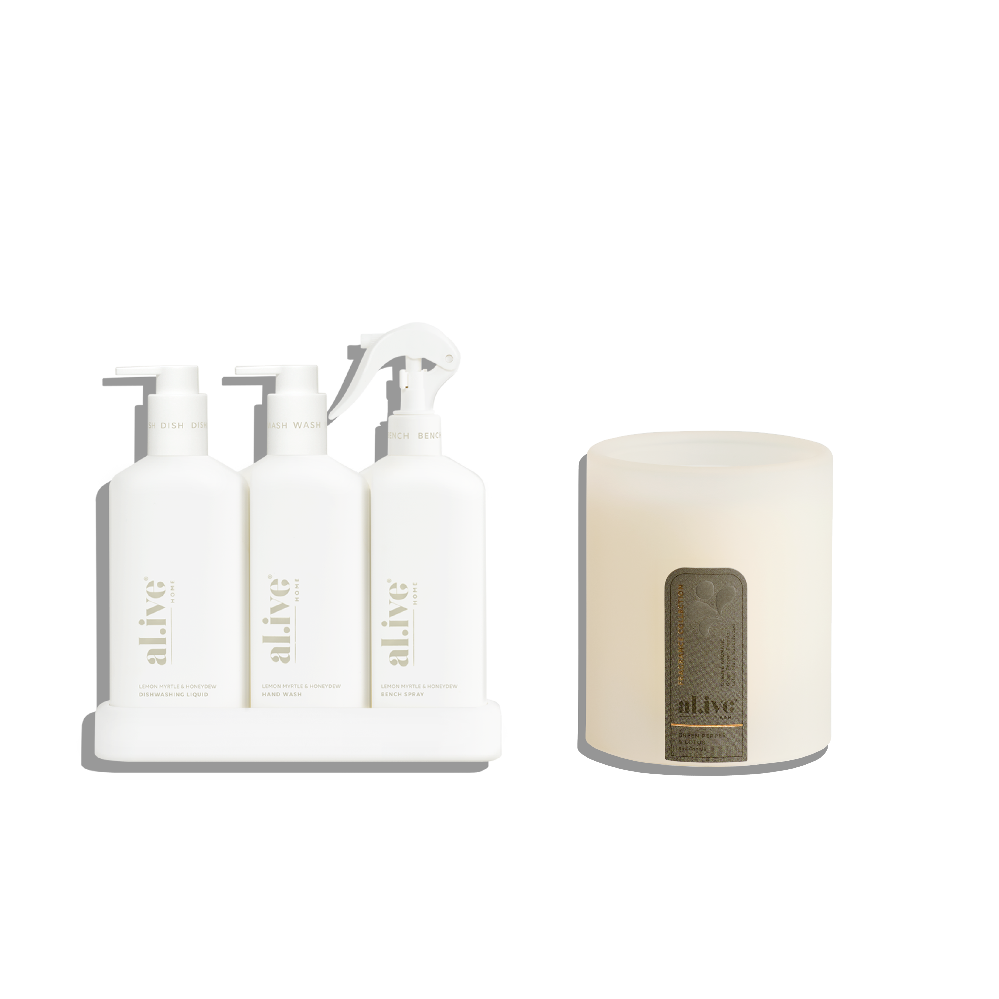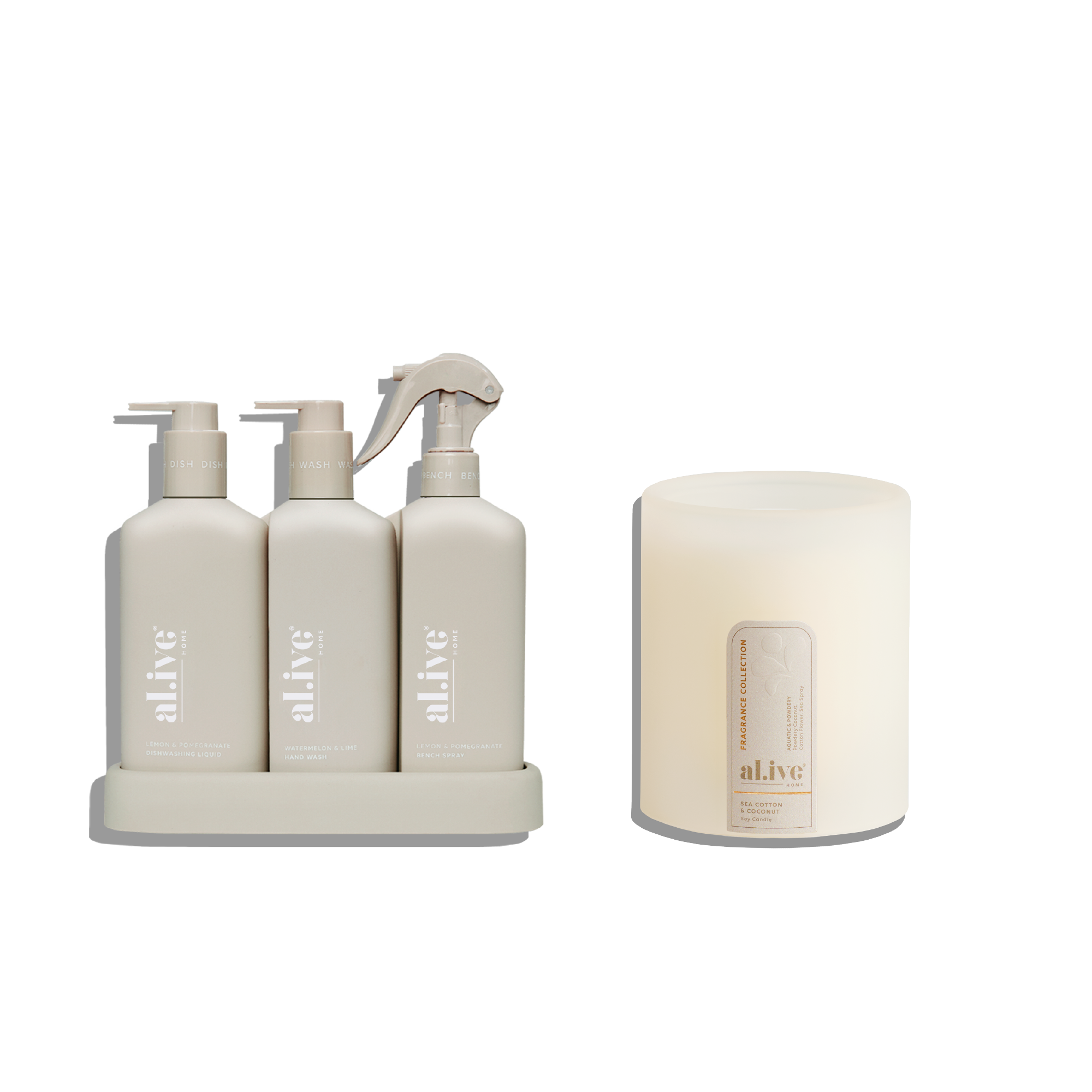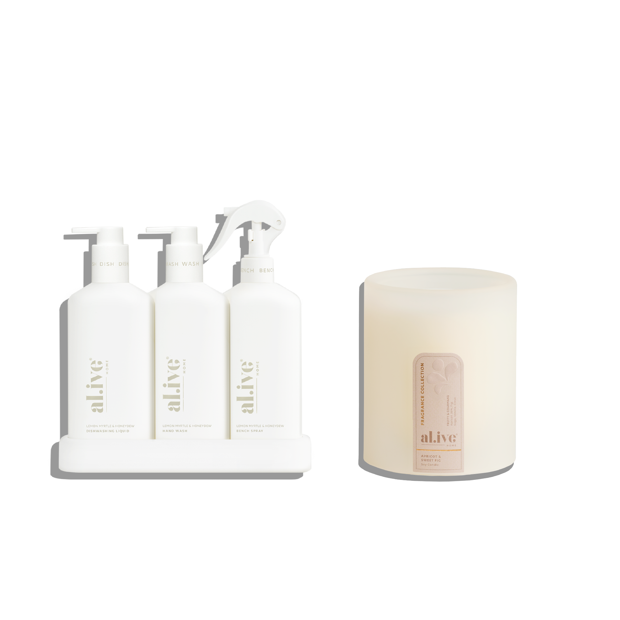 Pair the cleaning kit with a Kitchen Duo or Trio, available in both scents and colours. You can select a duo or trio based on the size of your space and personal preference for products, creating a cohesive and elevated look on your kitchen bench.