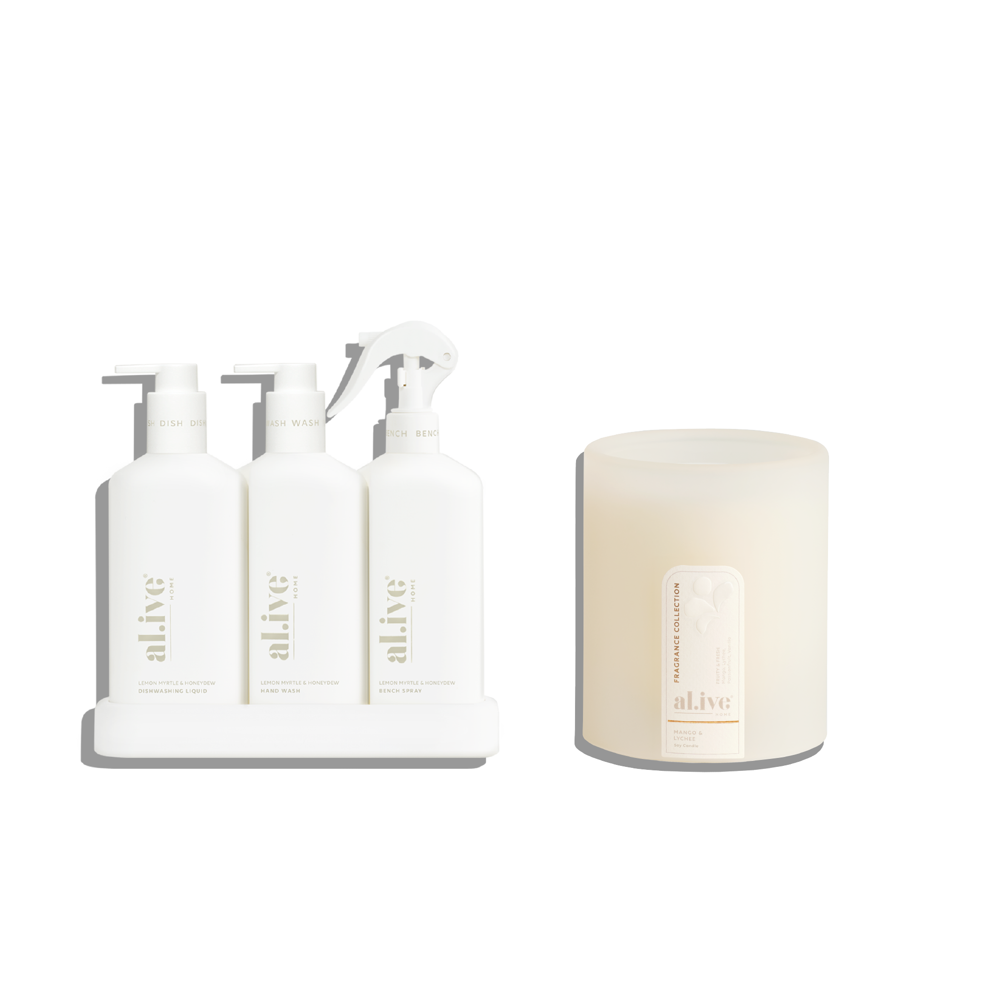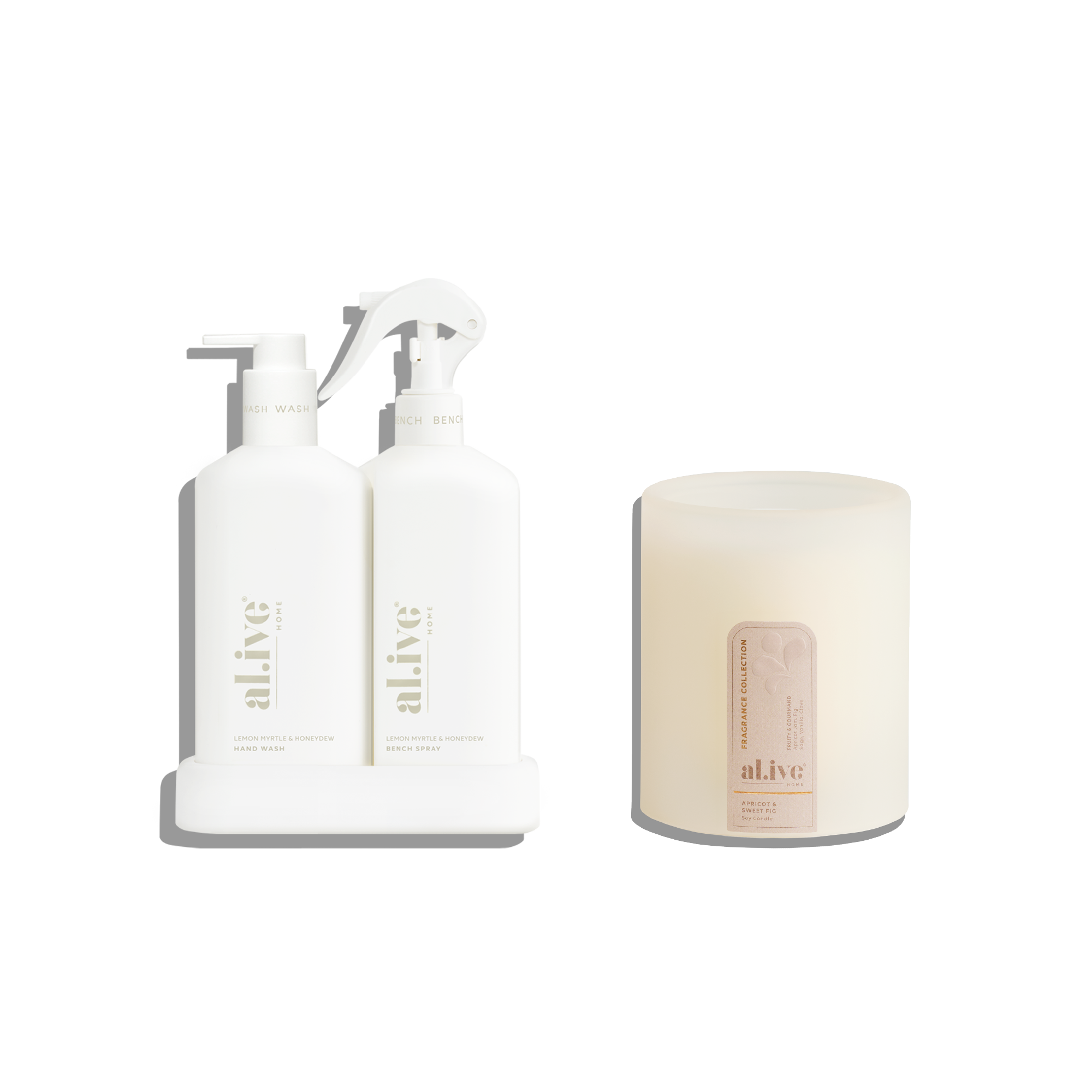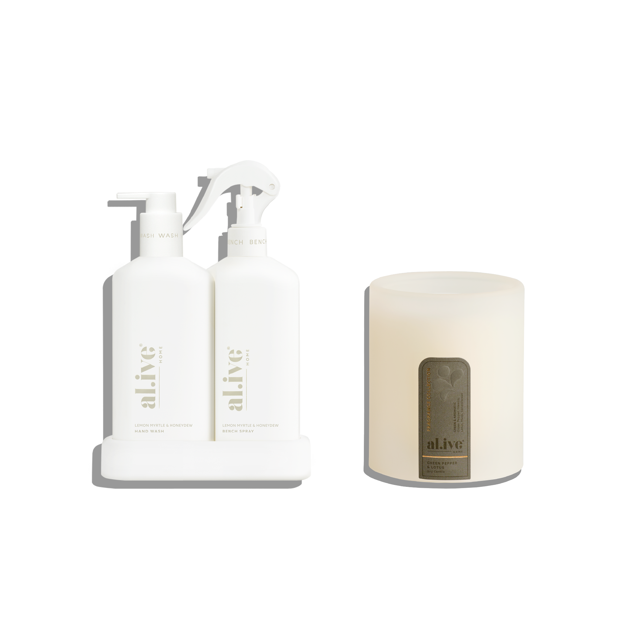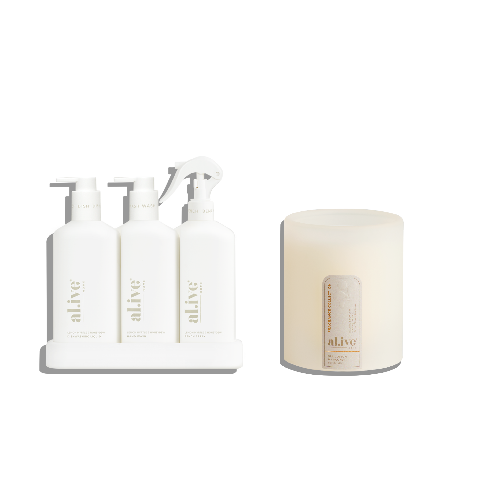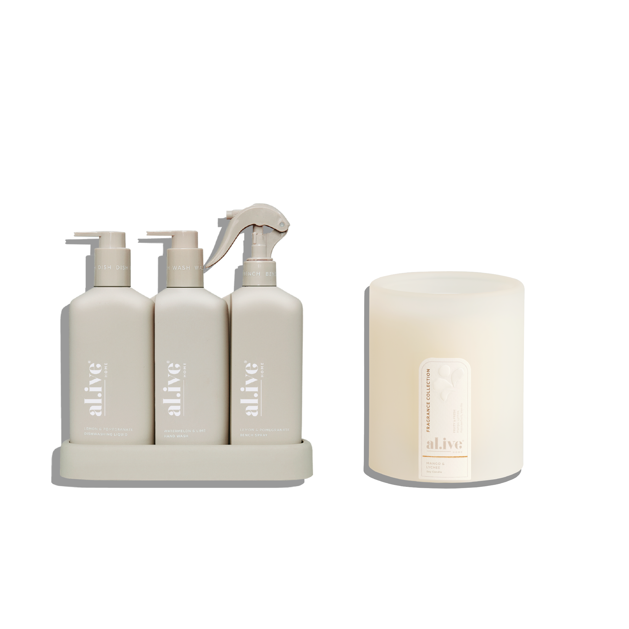Pair the cleaning kit with a Kitchen Duo or Trio, available in both scents and colours. You can select a duo or trio based on the size of your space and personal preference for products, creating a cohesive and elevated look on your kitchen bench.