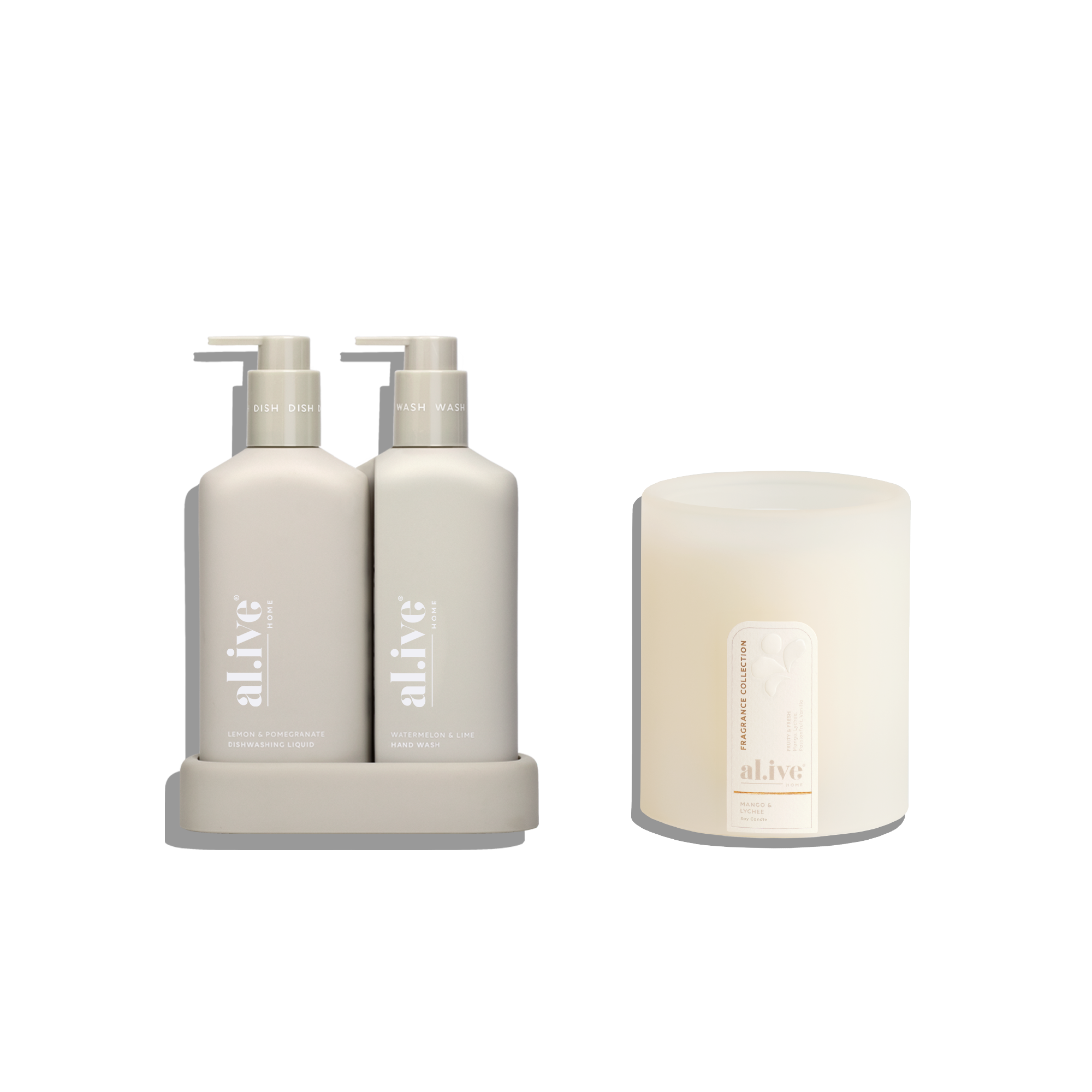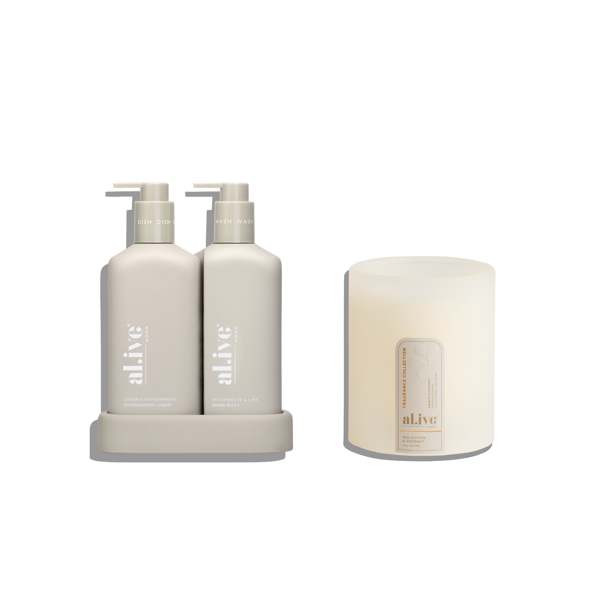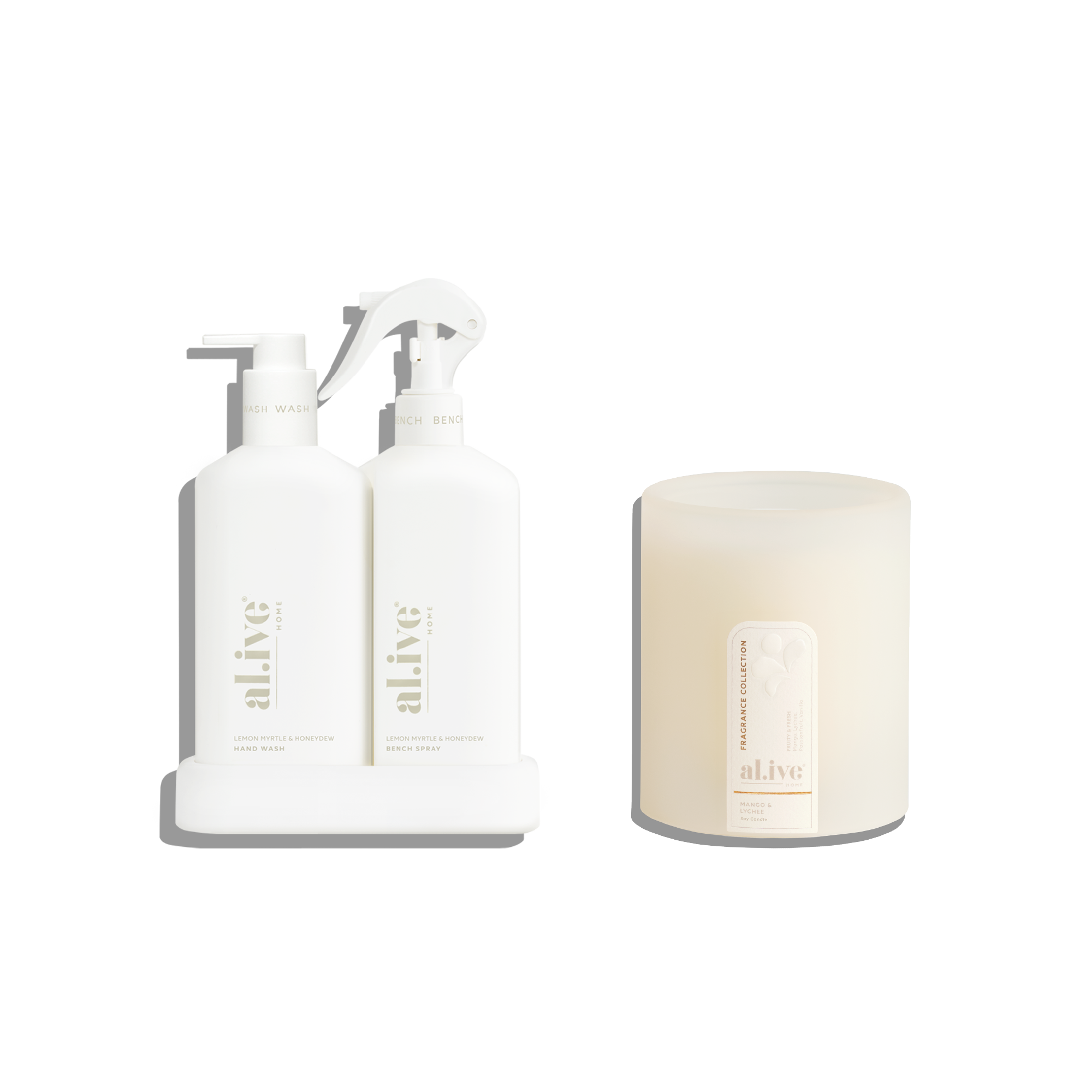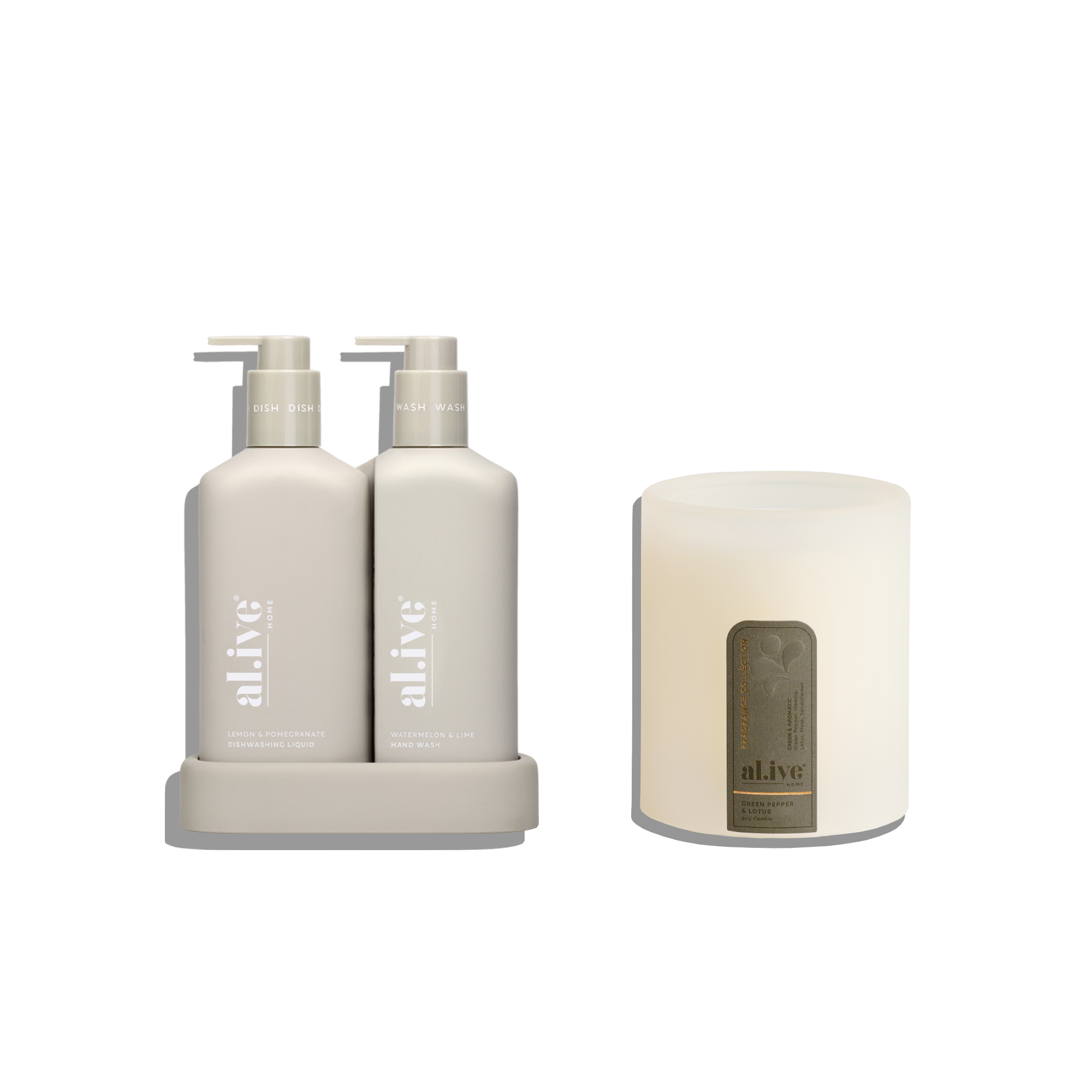 Pair the cleaning kit with a Kitchen Duo or Trio, available in both scents and colours. You can select a duo or trio based on the size of your space and personal preference for products, creating a cohesive and elevated look on your kitchen bench.