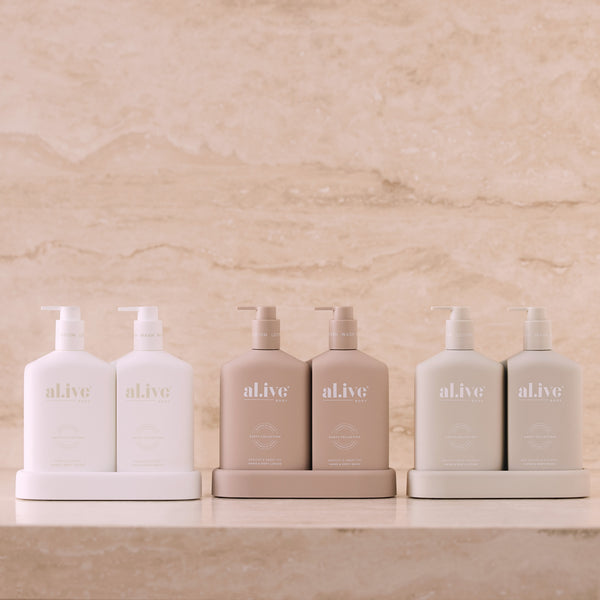 The Wash & Lotion Duo Bundle pairs three of your favourite Duos, allowing you to mix and match scents and colourways to suit different spaces within your home. Create a cohesive look across rooms while saving when you bundle three sets together.